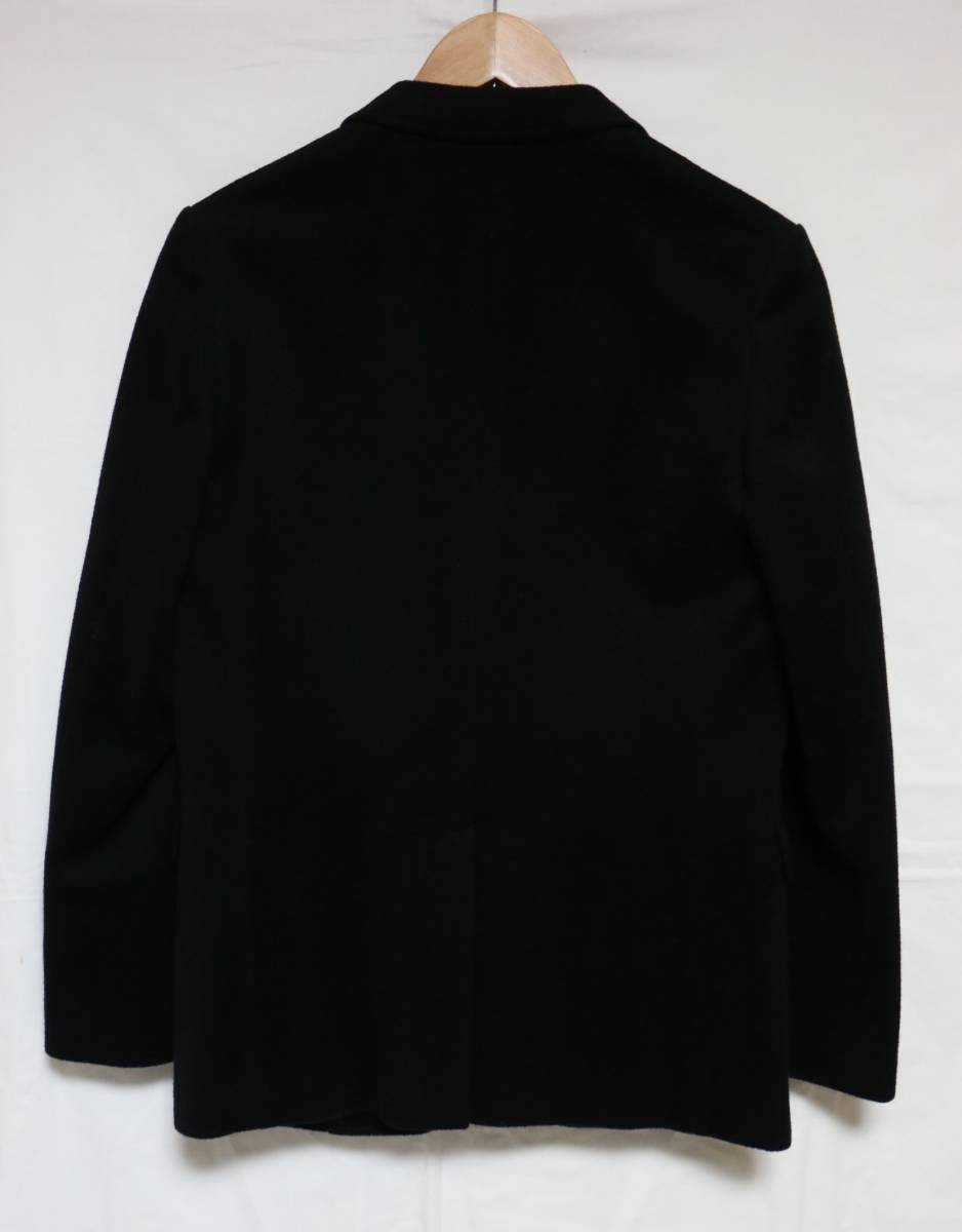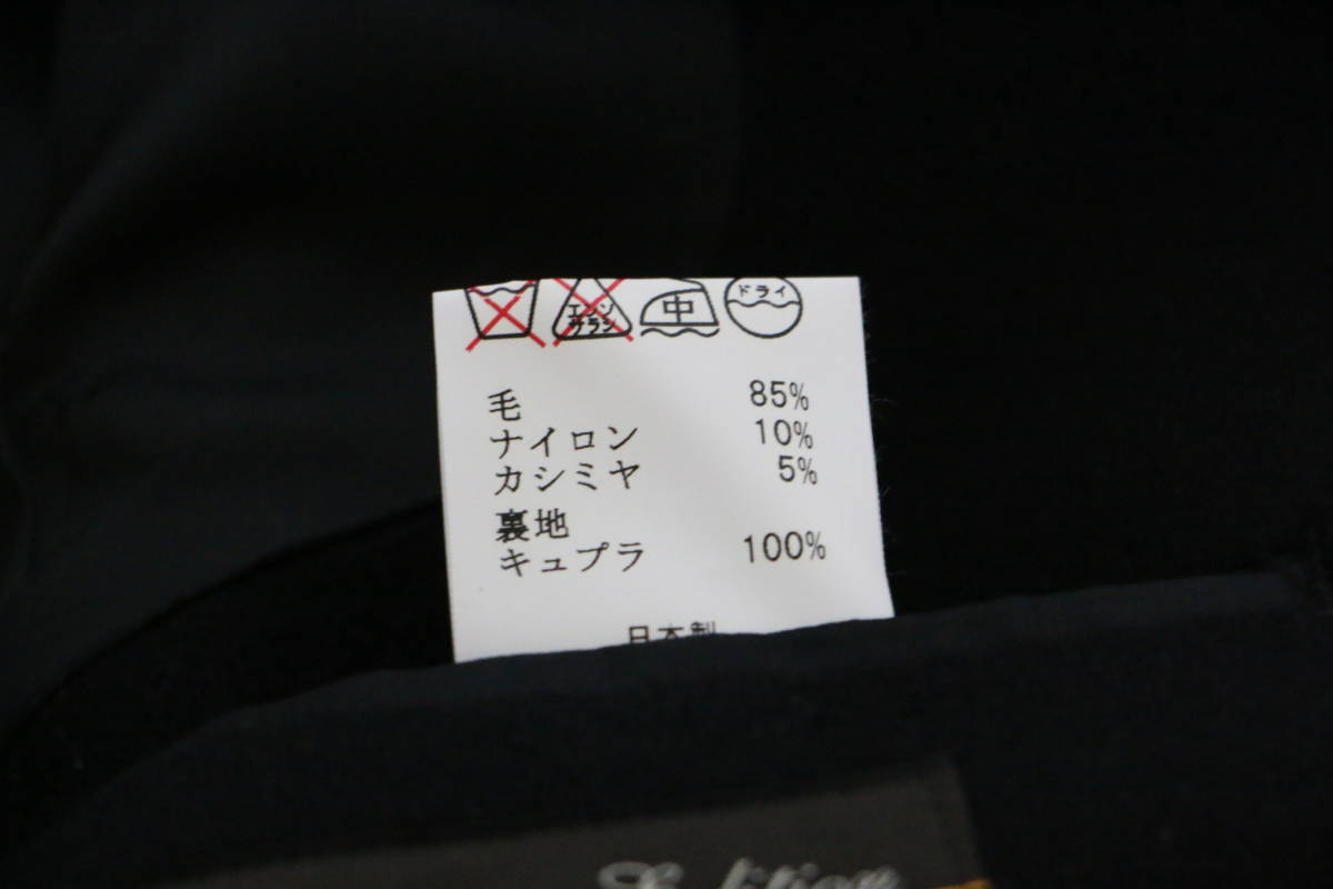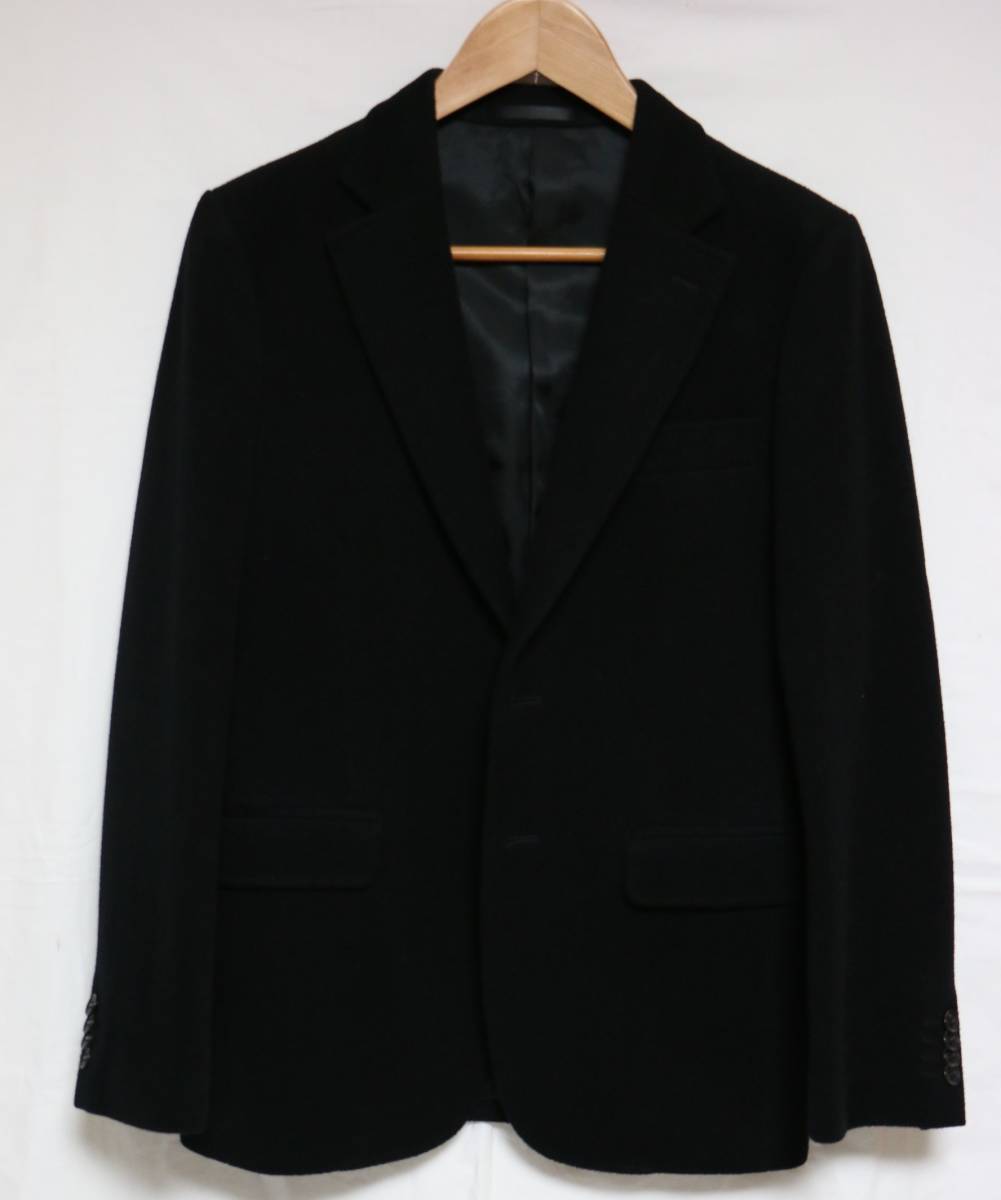 カラーはブラック。ウールにポリエステル、カシミア混合の生地で、秋から冬に調度いい生地です。