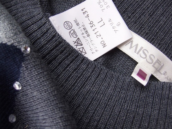 ![]() ![]() 落札後はオークション終了のお知らせメールに出品者からのメッセージが御座います。 自己紹介欄には急な休み等の記載をする場合が御座いますので一度お目通し頂きます様お願いいたします。ご一読の上オークション終了後2日以内の連絡、 落札後4日以内のご入金のお約束を守って頂ける方のご入札をお待ちしております。 小さい子供がおりますのでお急ぎのお取引を希望される方のご入札は遠慮下さいませ。 ---↓ここにブランド名記入---- ブランド名:MISSEL ミゼール 株式会社ジュニアー ---↓ここに特徴記入---- 特徴:小さいビジューが煌めくアーガイル風柄しなやかニットです。薄手のしっとりとした滑らかな肌触り。スチールグレイ系を基調にネイビー系×鶯色系の変形ダイヤ柄に沿った輝きビジューが上品なゆったりサイズのローネックセーターです。 ---↓ここにサイズ記入---- サイズ : LLサイズ 表示(トルソーは9号です) 実寸(平置き採寸) 肩幅40cm、身幅55cm、袖丈59cm、ウエスト55cm、着丈65cm、裾幅55cm、ネック5cm ---↓ここに素材記入---- 素材 : アクリル70% 毛30%