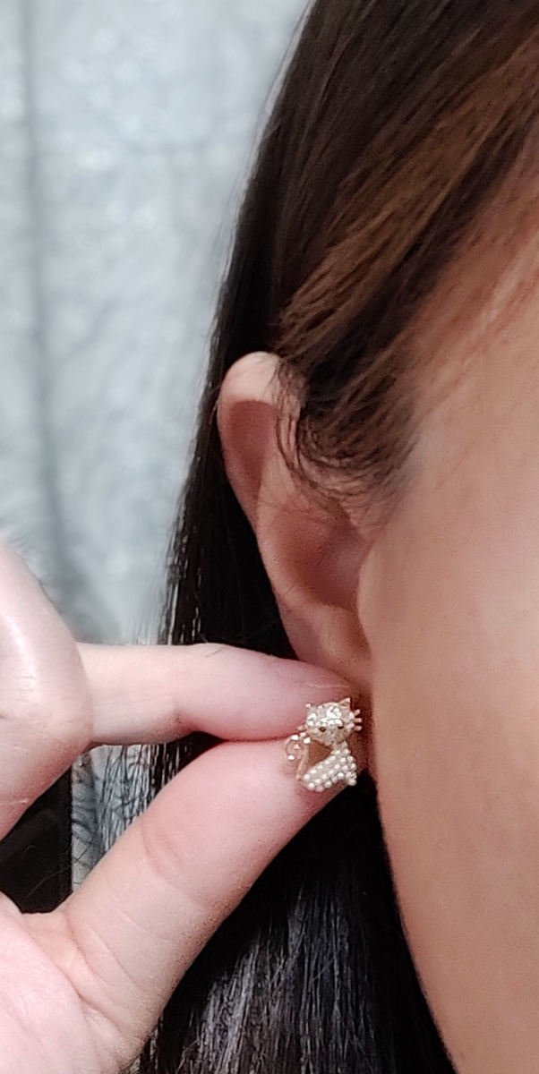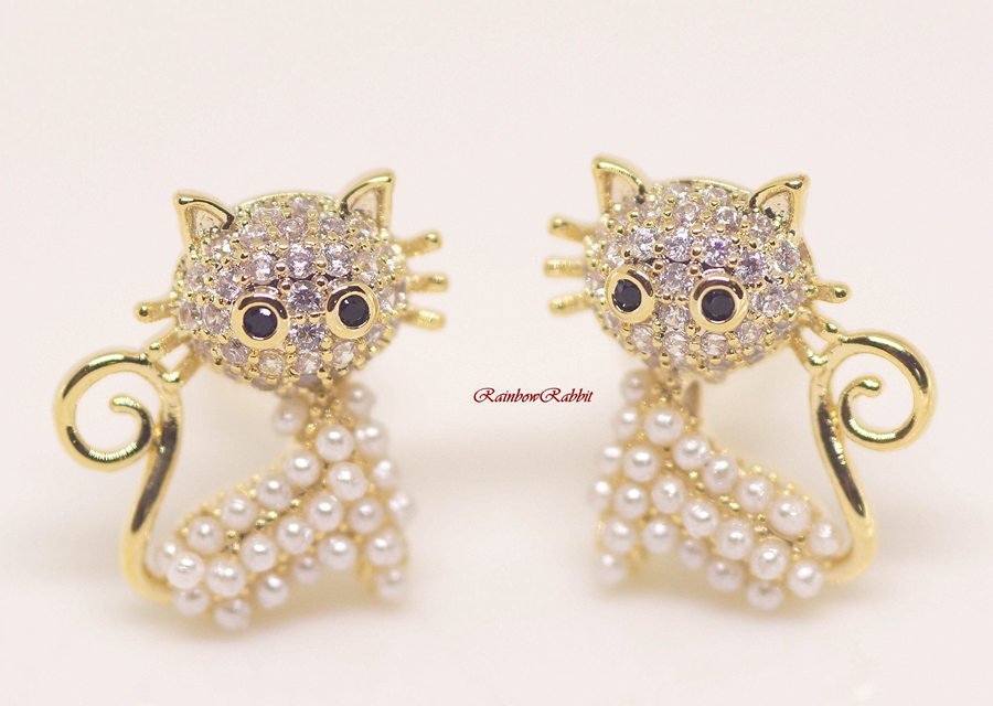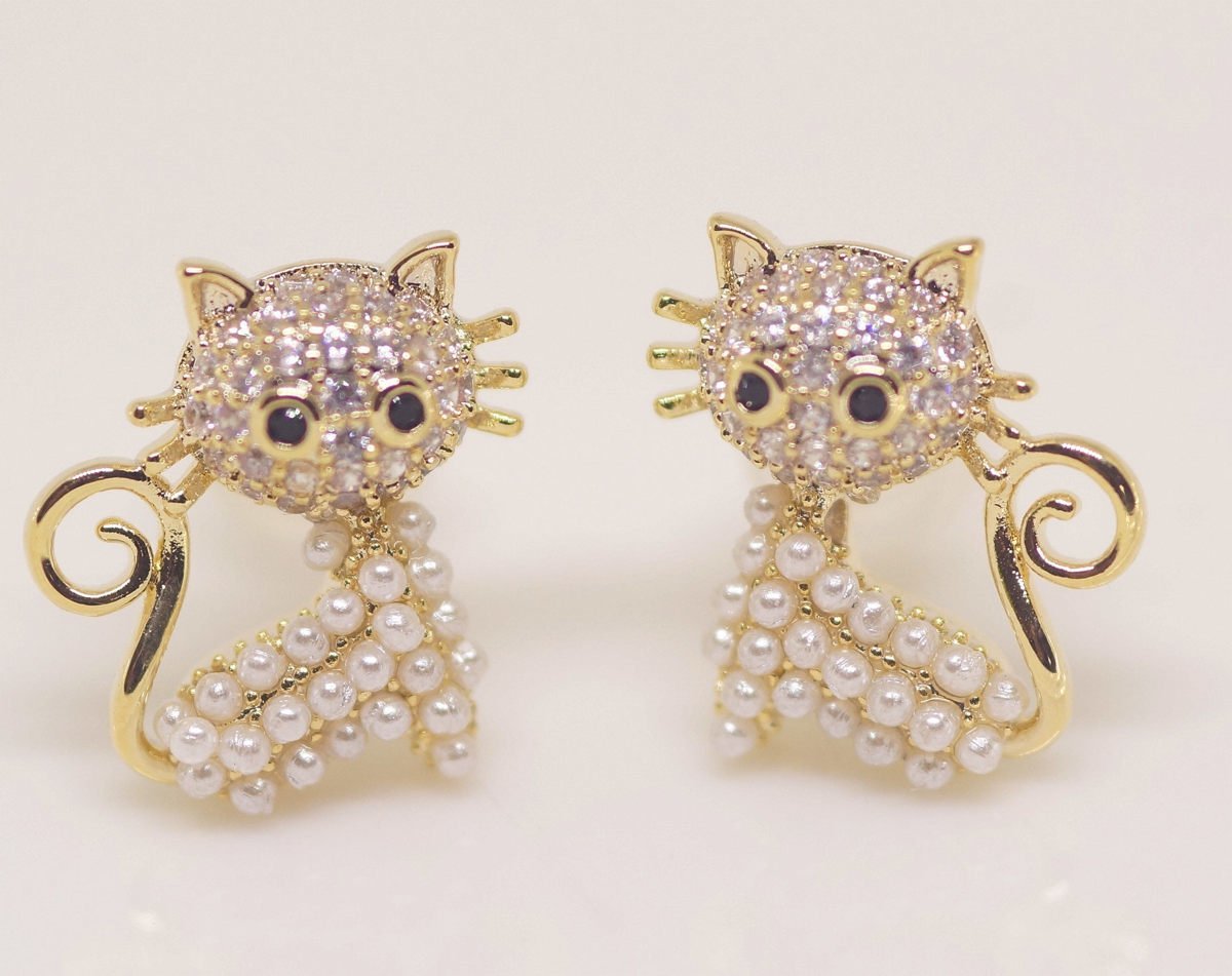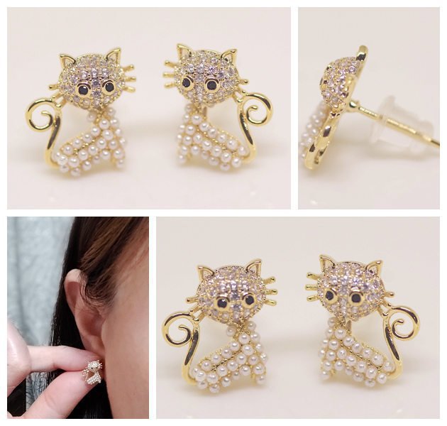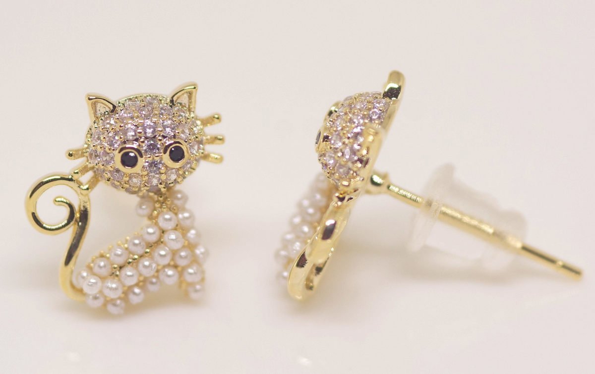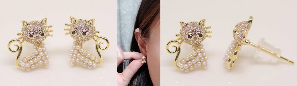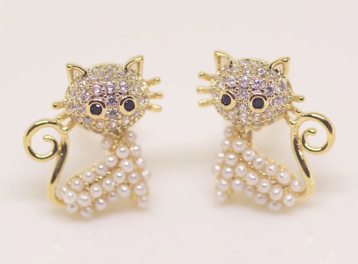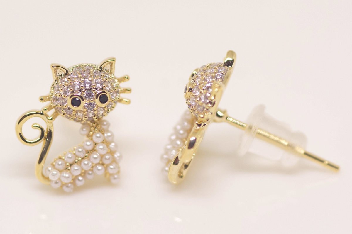 18K RGP ゴールド ダイヤ CZ 猫 ピアス gp5520
