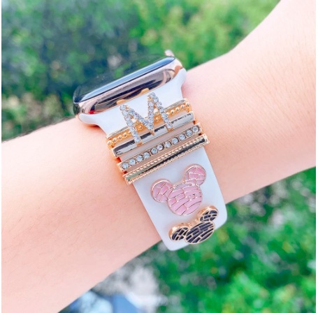【1~6】装飾的シリコンストラップ,apple watchチャーム,リベット,アクセサリー,iwatchラバーブレスレット用