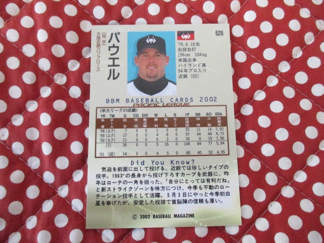 ★BBM 2002 ②★ 626 パウエル 大阪近鉄バファローズ ベースボールカード トレカ♪