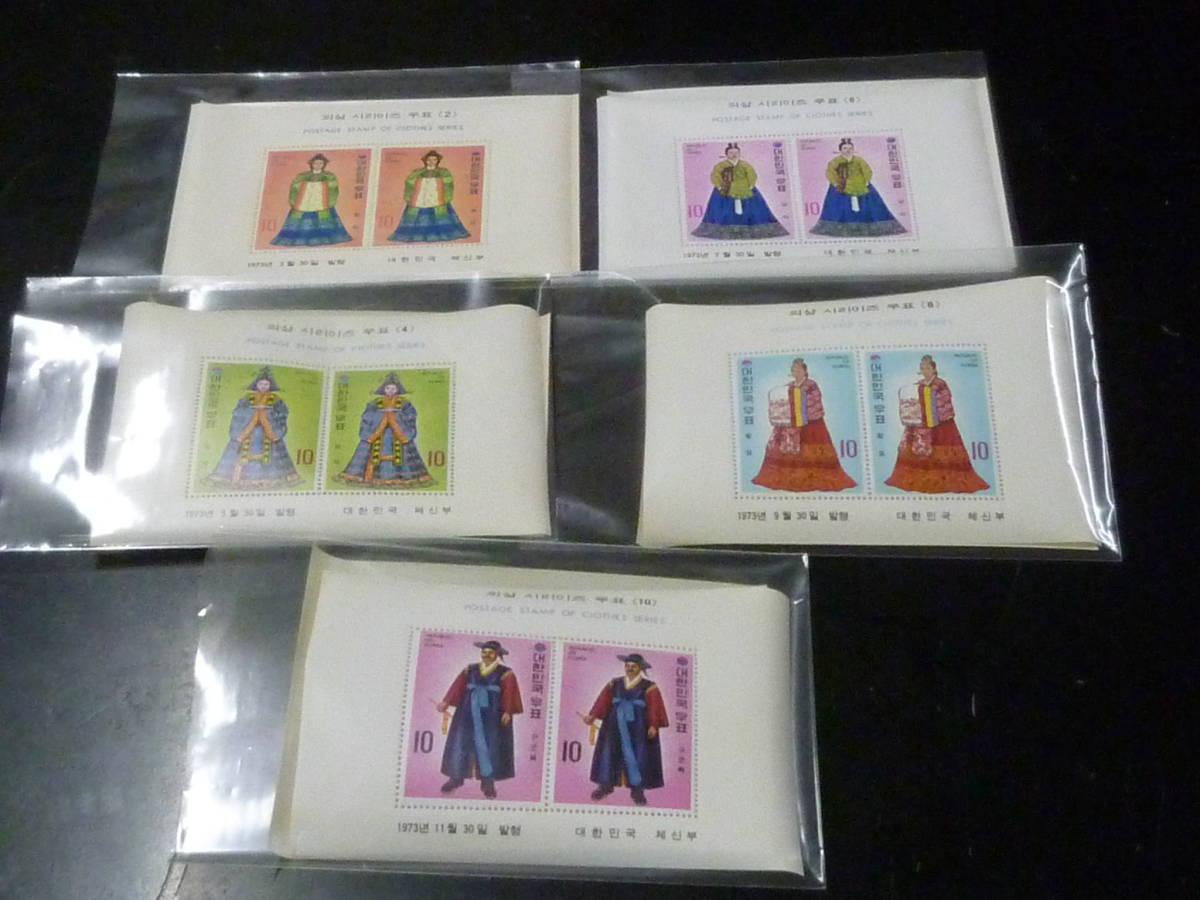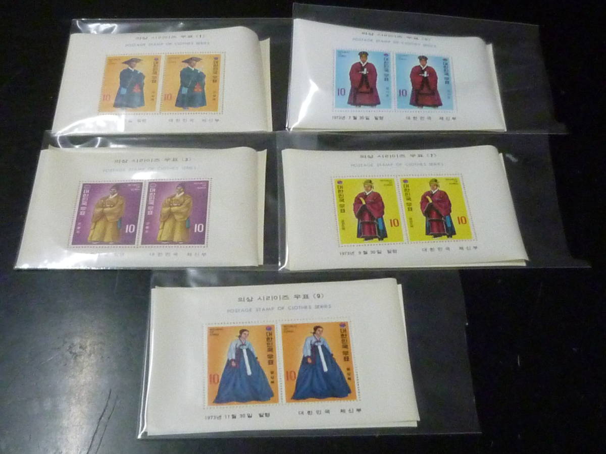 22 P 韓国切手 1973年 衣装シリーズ 第1-5集 完揃 小型シート 計10種 未使用NH、VF 【JPS型価 8,200円】