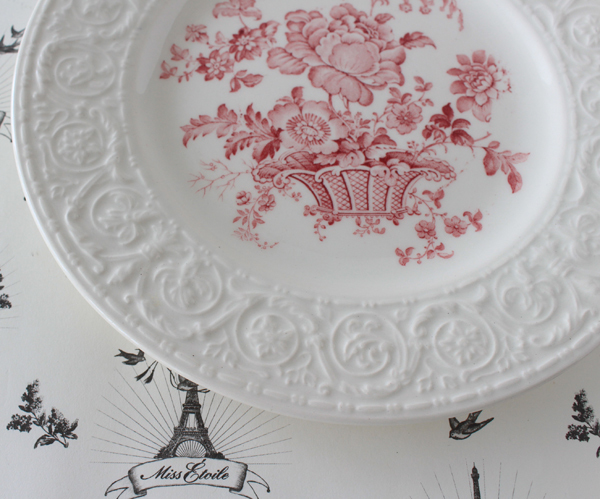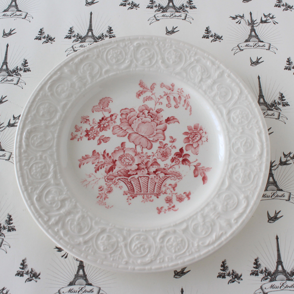 再値下 イギリス ヴィンテージ レリーフのリムに赤絵が美しいデザートプレート アンティーク 皿
