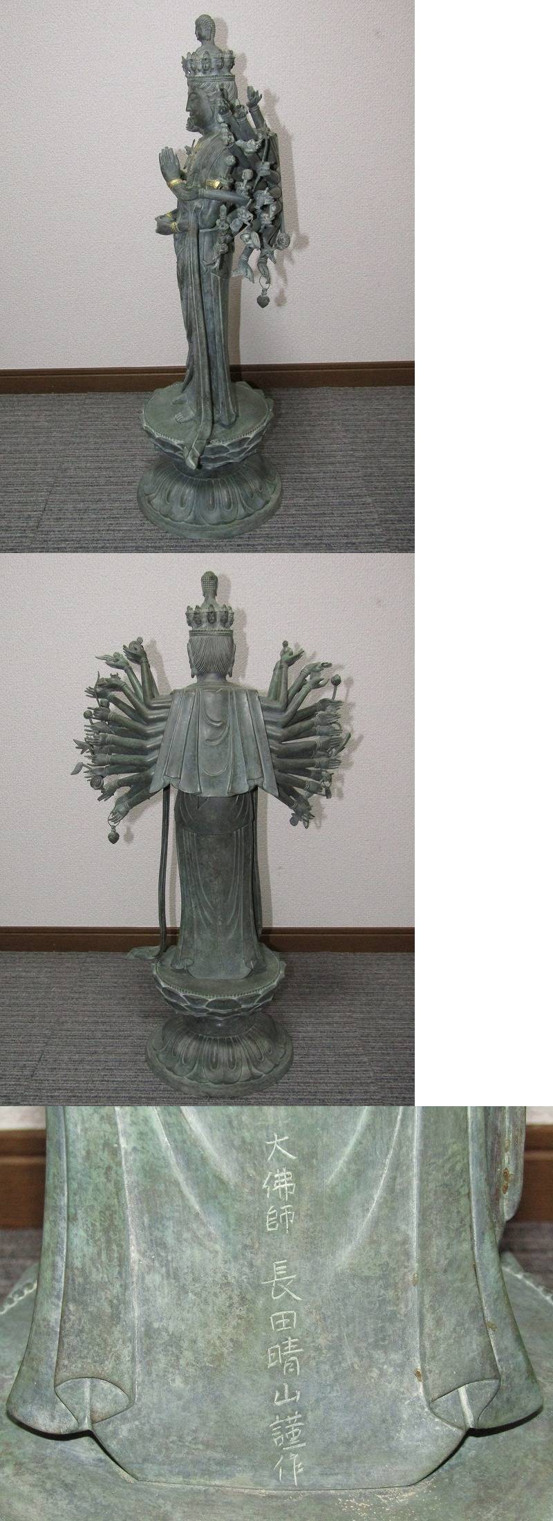 | a17-6076[SAN] 大佛師 長田晴山 謹作 ブロンズ 青銅 千手観音菩薩立像 高さ70cm 重さ18.9kg 本物保証 仏教美術 | |