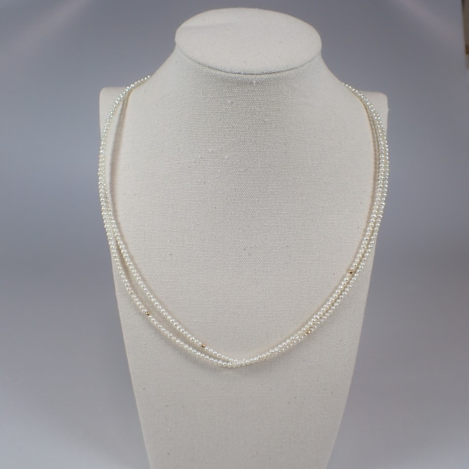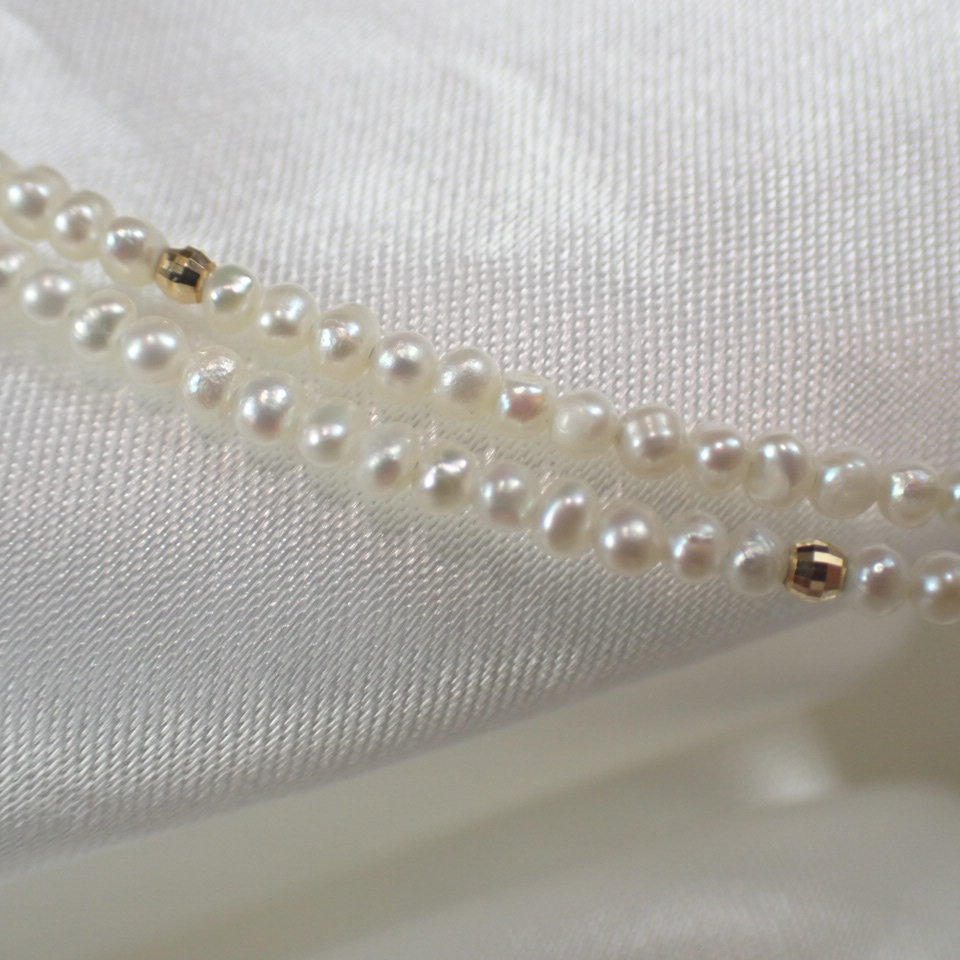淡水真珠 2連 ネックレス パール 18YG ミラーボール 長さ 44cm