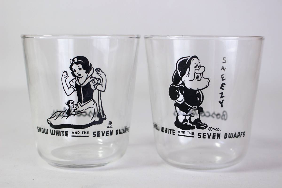 送料無料 2個セット ▼ ボスコグラス ディズニー 白雪姫 7人の小人 スノーホワイト BOSCO GLASS チョコレートシロップ タンブラー 1930年代 ▼AF-22▼