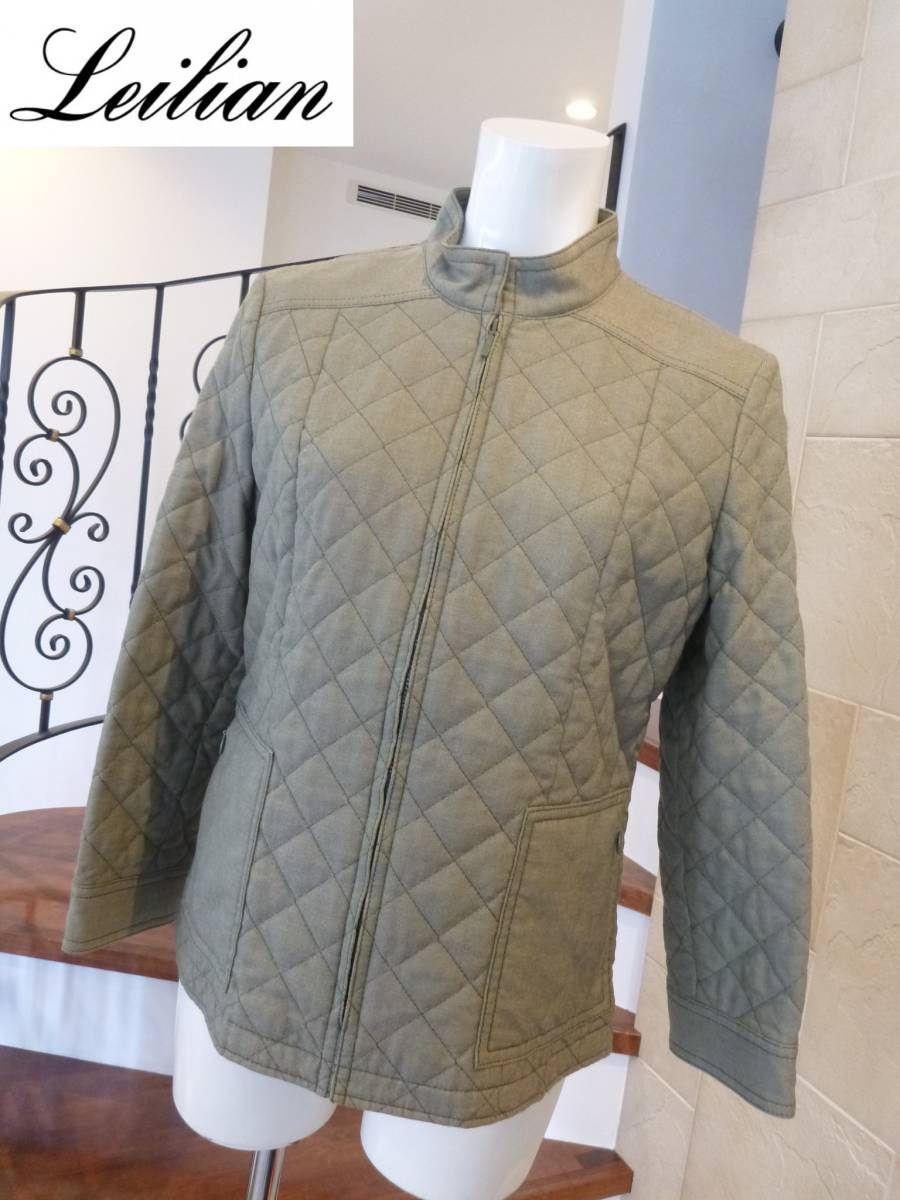 美品 Leilian レリアン ★カーキ系 グリーン系 キルティングジャケット 9 M相当