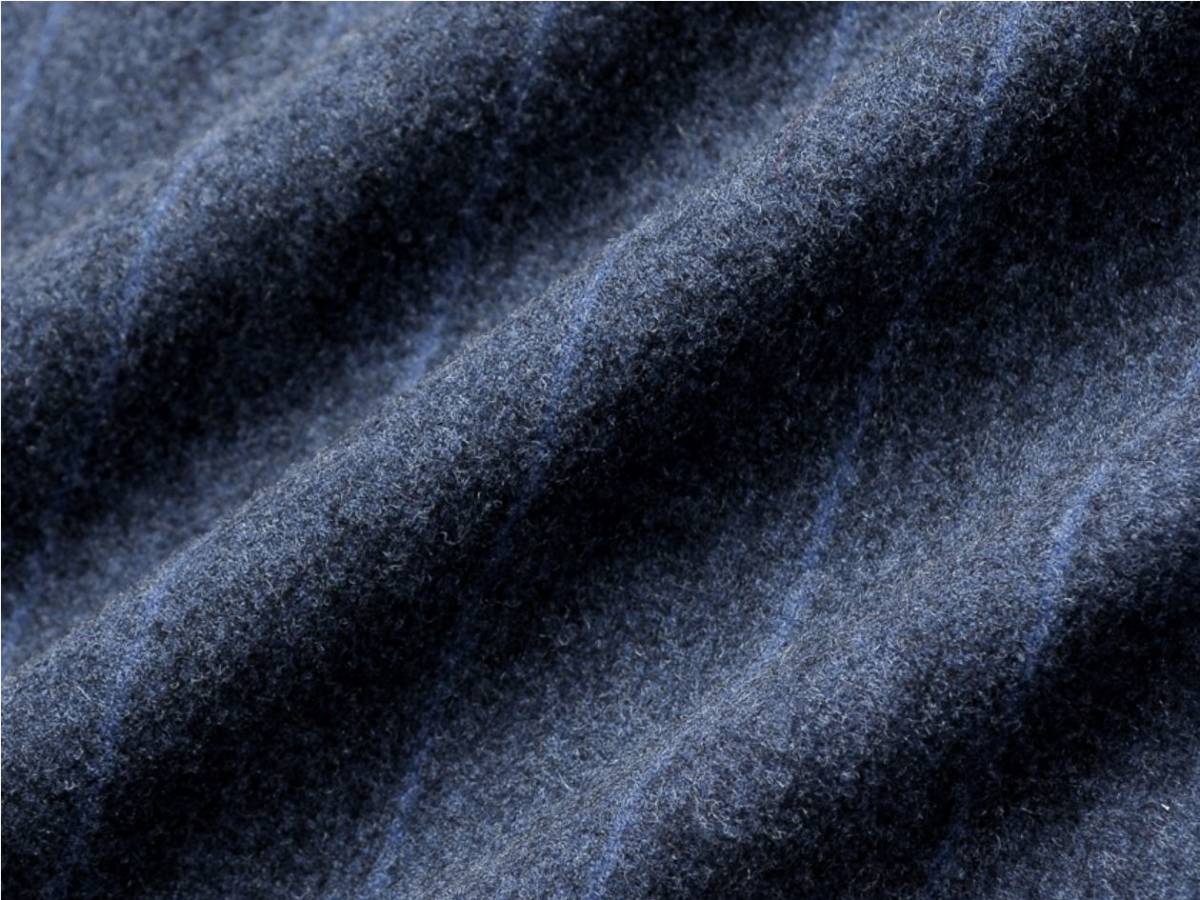 こちらのジャケットには「薄手ポリエステル中綿」がパテッドされています。 もともと防寒性の高いウールフランネル素材のジャケットですが、薄手のポリエステル中綿を入れることで、 スッキリとしたシルエットを損なうことなく防寒性が高められています。中綿によって防寒対策が施された こちらの一着なら、冬でも快適に過ごすことができます。