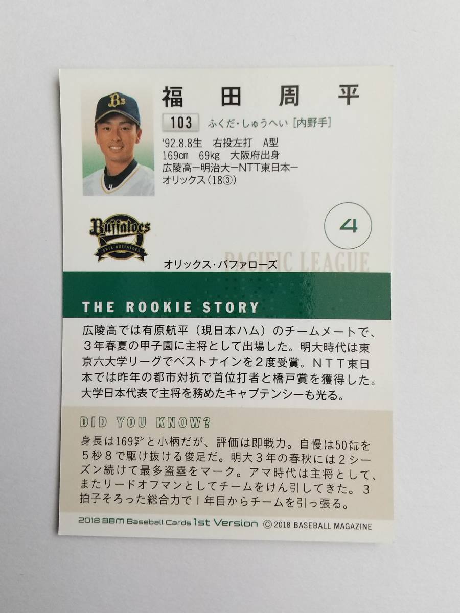 BBM 2018 #103 オリックスバファローズ 福田周平 ルーキーカード