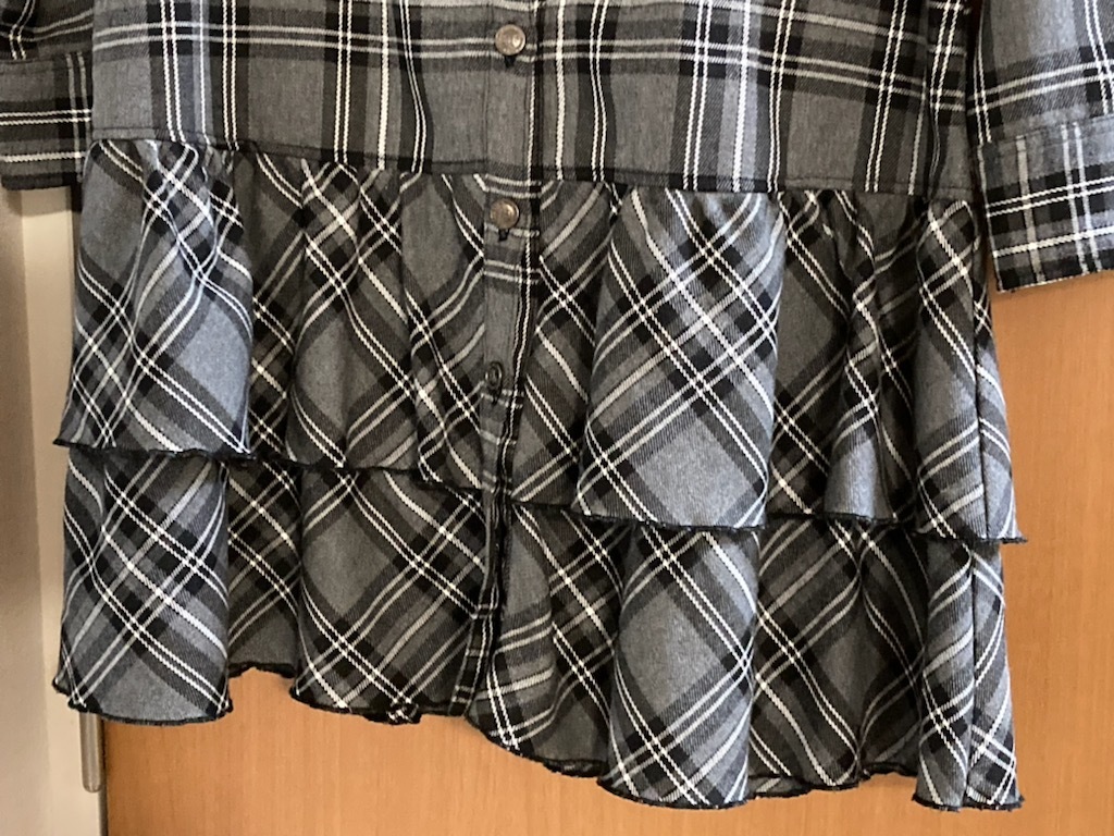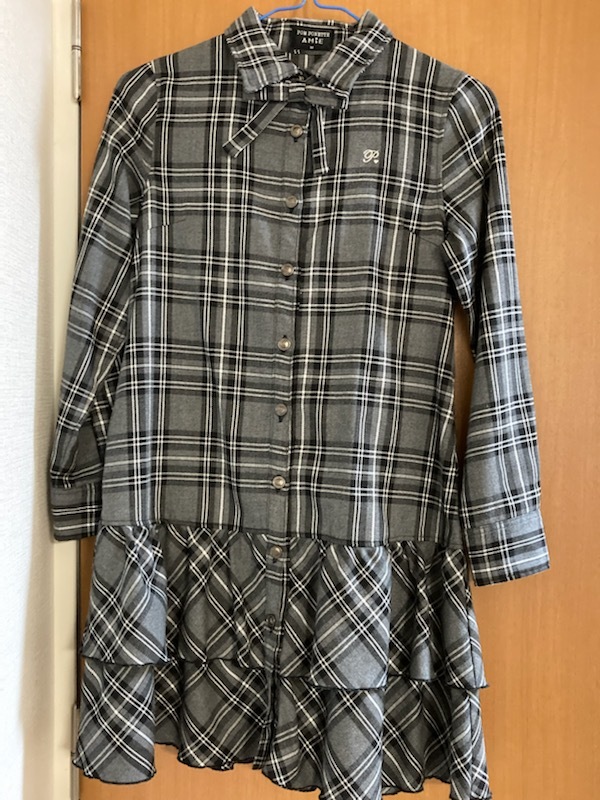 知り合いにお下がりをもらいましたが、当方では着る機会がなくしまってありました。 元々、1、2回しか着ていないということで、状態は良いです。 リボンはボタンで取り外しができます。 お揃いでついていたシュシュももらいました。 シュシュはどの程度使ったのかわかりません。 当方ではシュシュも使用していませんが、ゴムが少しゆるいようなので、縫い目をほどいてゴムを交換した方がよさそうです。 シュシュの方はあくまでおまけとお考えください。 裏地はついていません。重ねる服を変えれば真夏以外は着られると思います。 サイズ:M150(着丈約75.5cm 袖丈約51.5cm 身幅約39.5cm(身幅は袖の付け根を計測。平置き実寸。素人採寸なので、多少の誤差はお許しください) 素材:ポリエステル80% レーヨン17% ポリウレタン3% ※オークション終了後はお手数ですが落札者さまよりお手続きを開始してください。 急用などで2泊以上対応ができない場合は自己紹介欄に記載いたします。 |