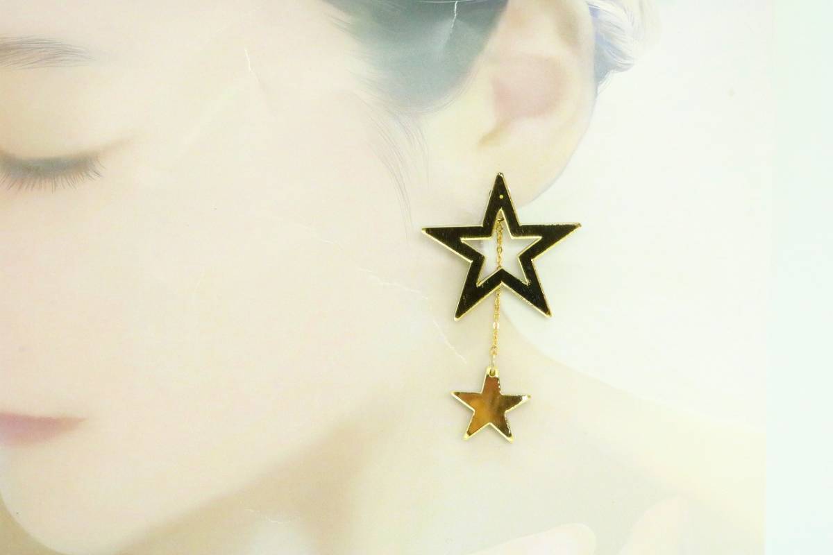 ■ 【U223】X-girl エックスガール バックチャーム スター ピアス 片耳のみ ゴールド×ブラック【送料全国一律198円】