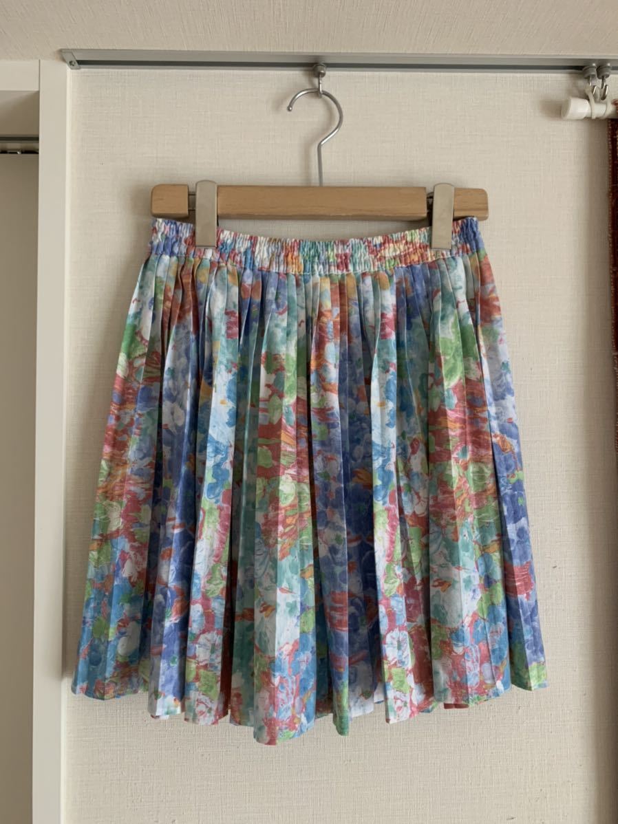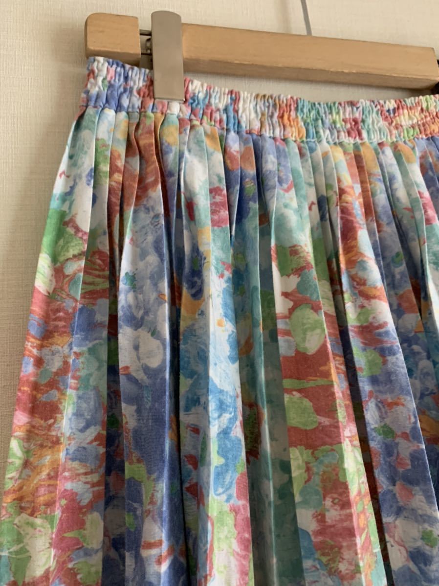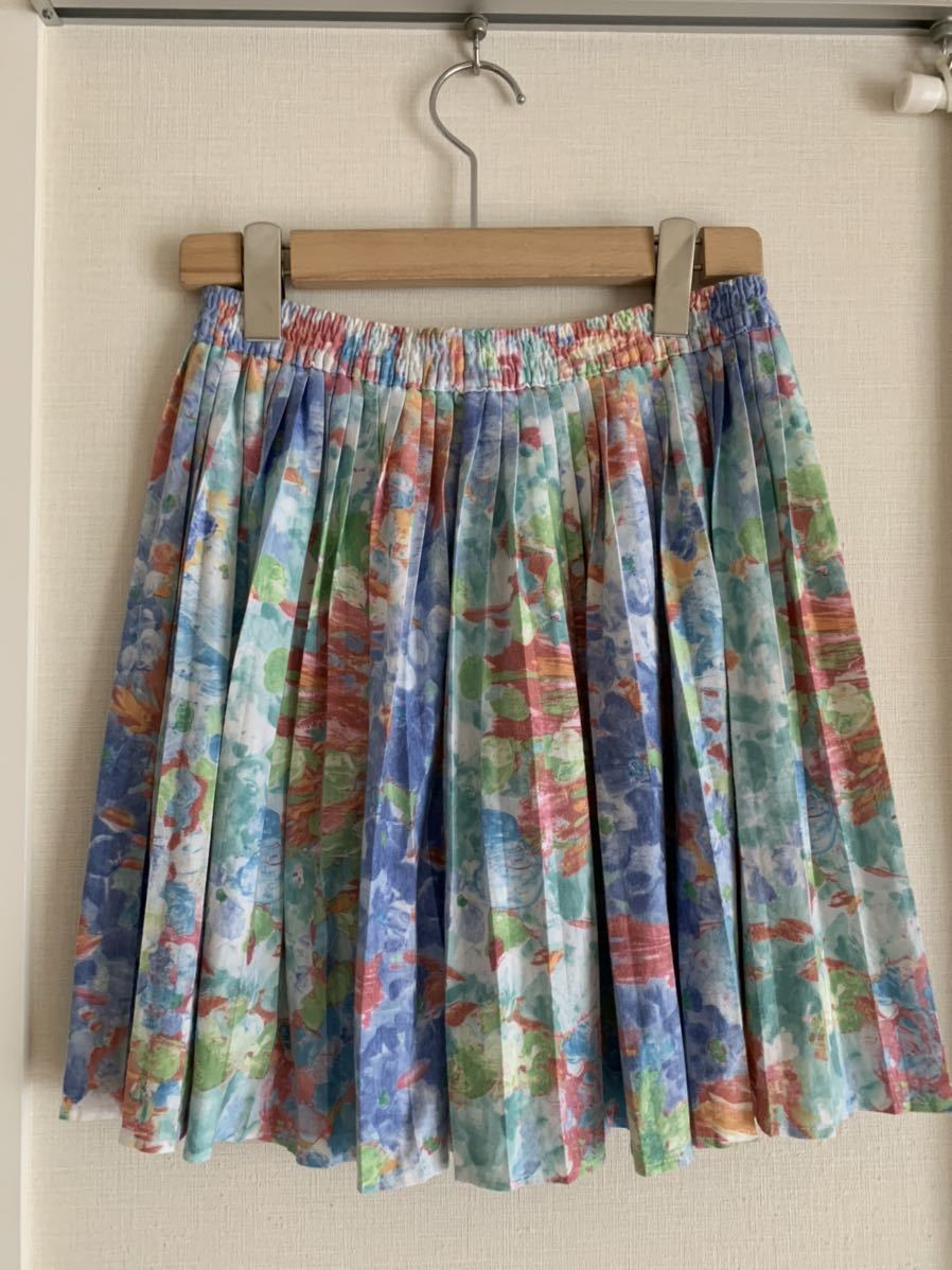 古着屋さん購入のデンマーク製スカートです。色合いが水彩画のようできれいです。着丈が短いのでお子さんのスカートでも良さそうです。