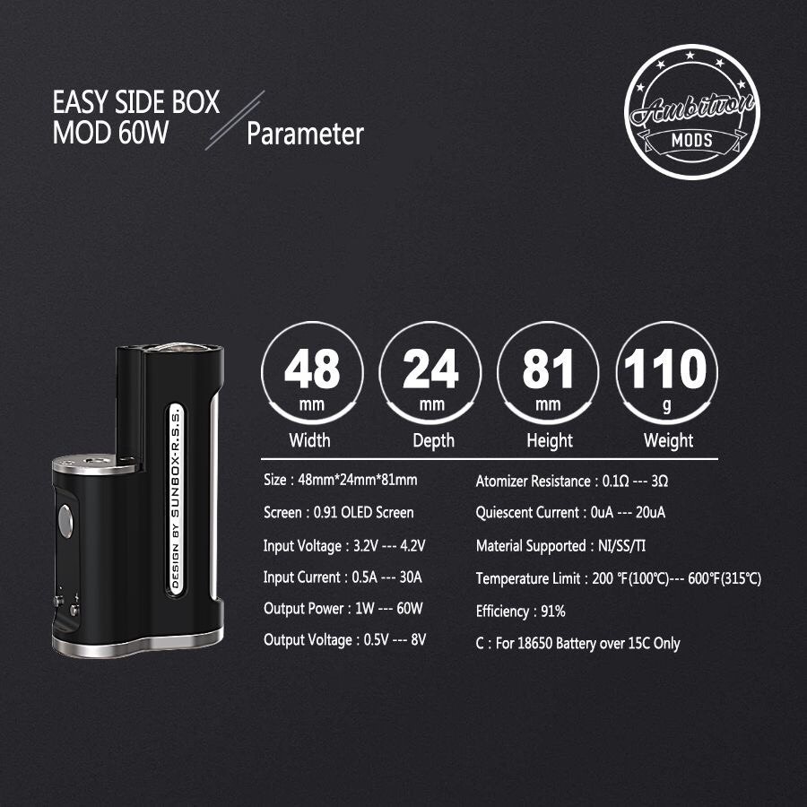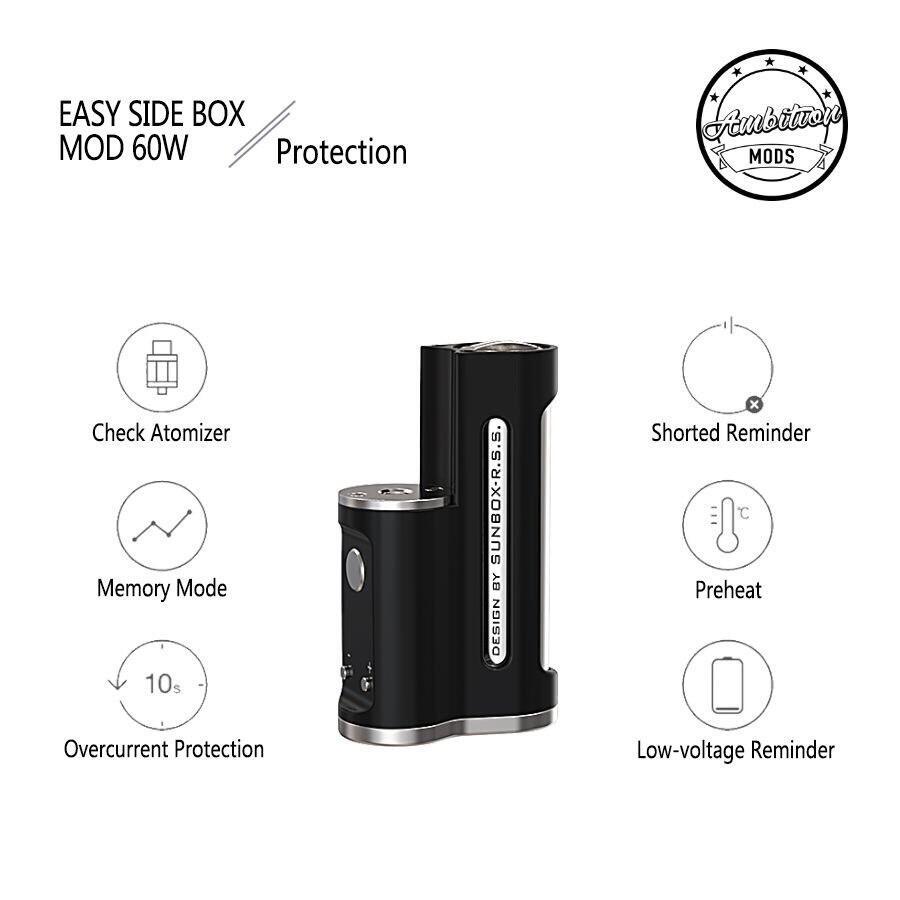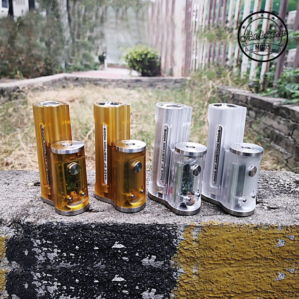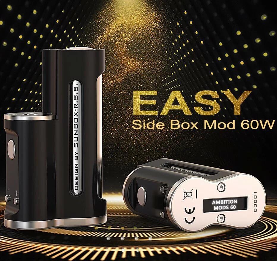 VAPE 人気メーカー『Ambition MODS』の『EASY Side BoI MOD』です。色は"YELLOW POLISHED"です。イタリアの高級ブランドSUNBOX(DESIGN BY SUNBOX R.S.S)のデザインによりステルスMOD人気をに火お付けた人気のMODです。アトマイザーの高さを嫌うデザイン重視のベイパーさんにお勧めです。