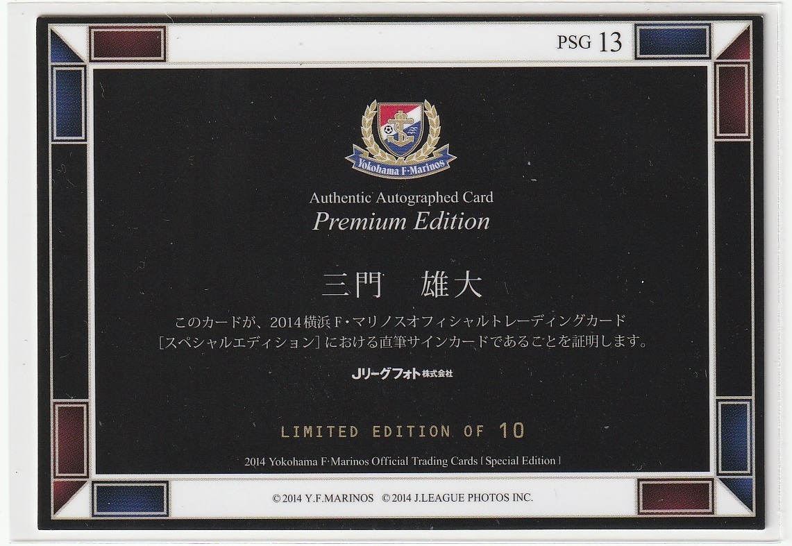 【三門雄大】2014 横浜F・マリノス スペシャルエディション 直書き金サインプレミアム直筆サインカード[Limited edition of 10]