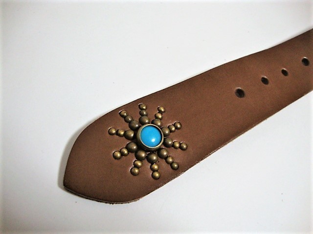 二つ爪ラウンドヘッドスポッツ・レリックブラスとアクリルカラースポッツ(ターコイズカラー)を使用しています。