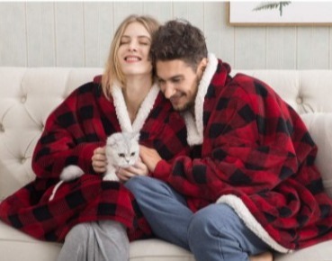 女性用 特大 フード付き フリース 袖付きの ブランケット 毛布 部屋着【10~13】