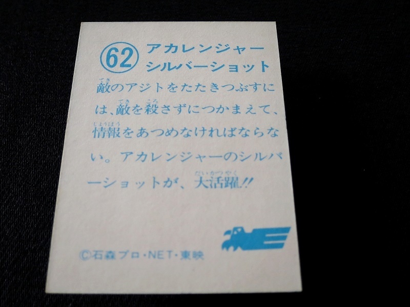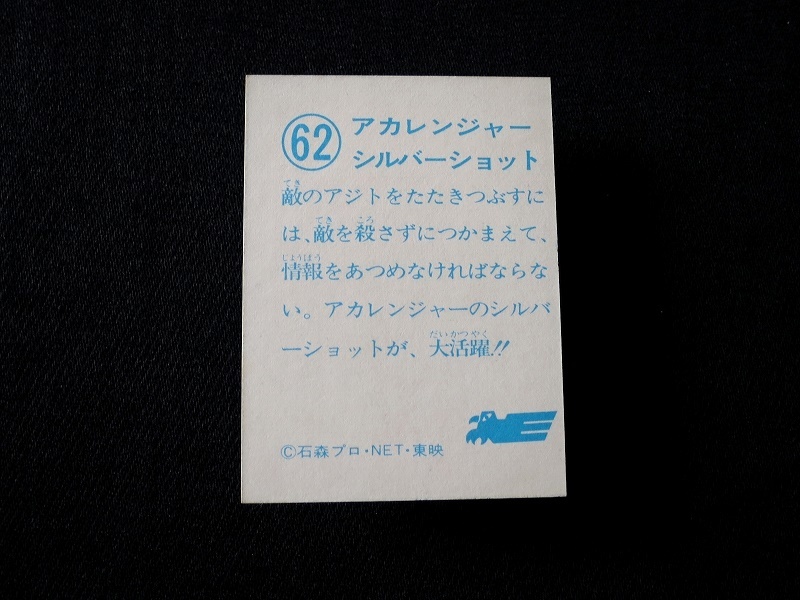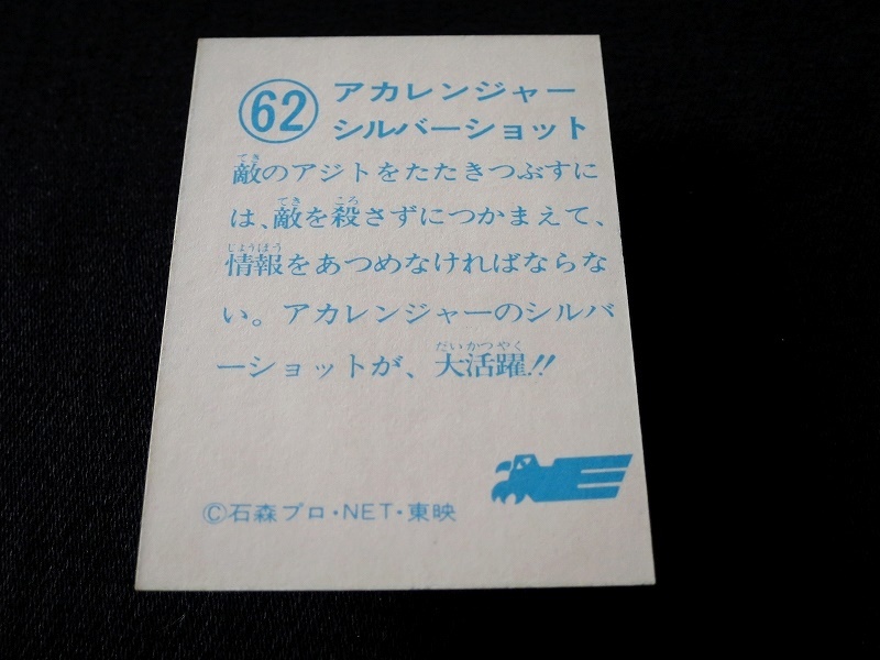 秘密戦隊ゴレンジャー ミニカード 70年代 バラ売り ・メーカー:山勝 ・1975年頃、当時の放送時に販売 ・6.6 cm x 5.0 cm ・同梱発送可能(複数落札の場合:定形、定形外郵便は、送料が変わる場合があります。) ・1-288番シリーズ ・1弾80種 001-080(タイトル違い.55.57.59.61.71.76.77,表修正.73) ・2弾32種 081-112 ・3弾64種 113-176 ・4弾48種 177-224 ・5弾32種 225-256 ・6弾32種 257-288 〓参考項目〓 ・原作石森章太郎 ・脚本上原正三 他 ・監督竹本弘一 他 ・制作テレビ朝日 ・放送期間1975年4月- 1977年3月 ・全84話 〓出演〓 ・海城剛・アカレンジャー:誠直也 ・新命明・アオレンジャー:宮内洋 ・大岩大太・キレンジャー:畠山麦 ・熊野大五郎・2代目キレンジャー:だるま二郎 ・ペギー松山・モモレンジャー:小牧りさ ・明日香健二・ミドレンジャー:伊藤幸雄 ・江戸川総司令:高原駿雄 ・陽子・007:鹿沼えり ・黒十字軍総統:安藤三男、八名信夫 ・ナレーション:田中信夫、大平透