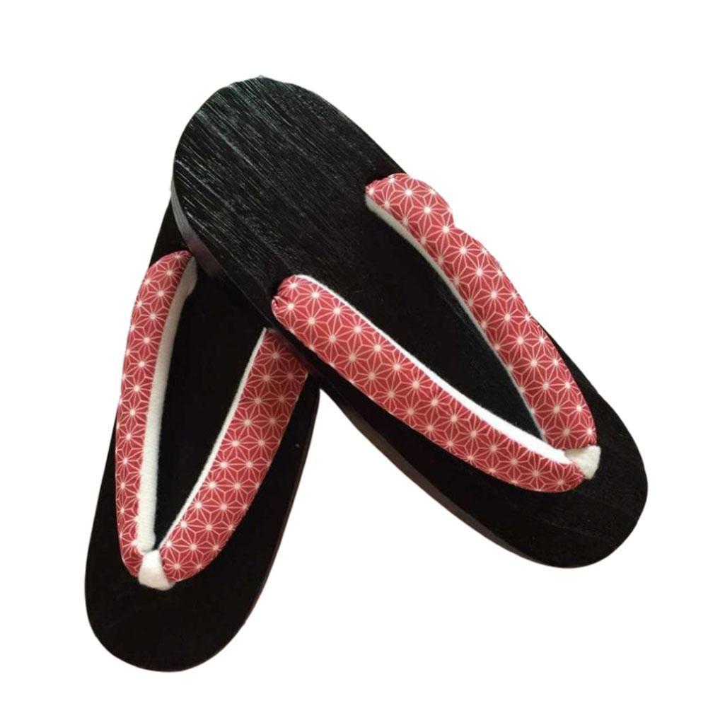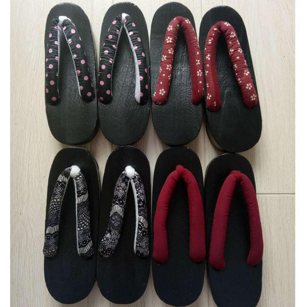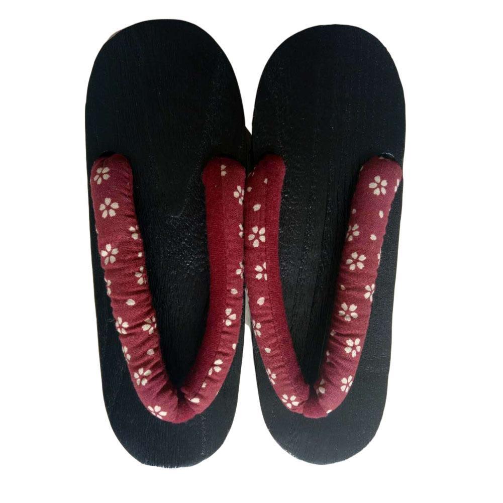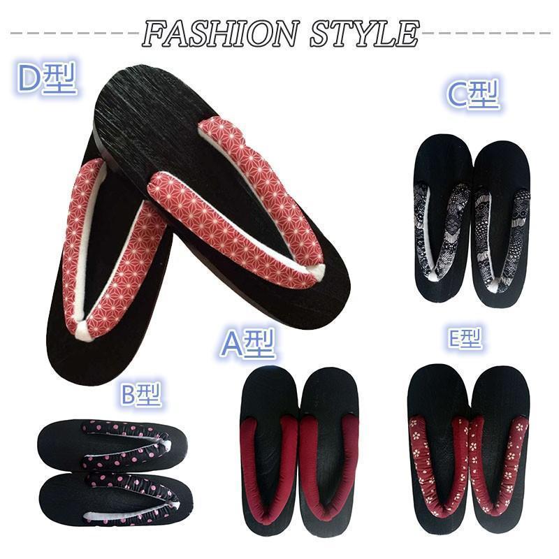 メイン素材: 綿 女性用の焼桐黒台の下駄です。 鼻緒部分が鮮やかでかわいい柄になっています。 鼻緒が柔らかくソフトな肌触りで、指がすれて痛くなりにくいのが特徴です。 軽い下駄ですので、疲れにくく快適に履いて頂けます。 ゴム底なので、普段のサンダル代わりにも使えて便利です! カラー:A型、B型、C型、D型、E型
