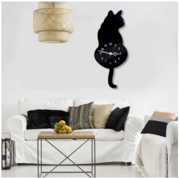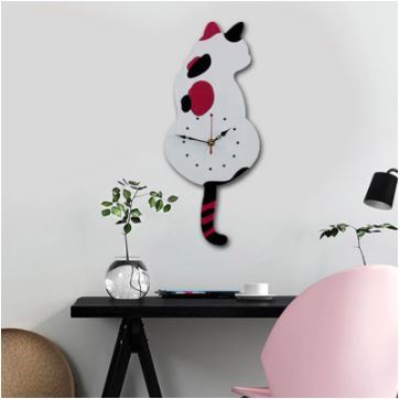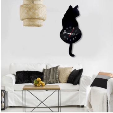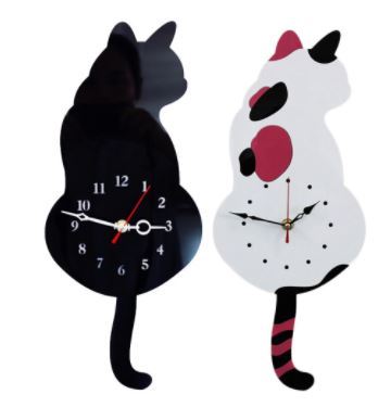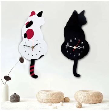 猫の形をした壁掛け時計,キュートでクリエイティブな装飾,壁の装飾,子供部屋用,白/黒