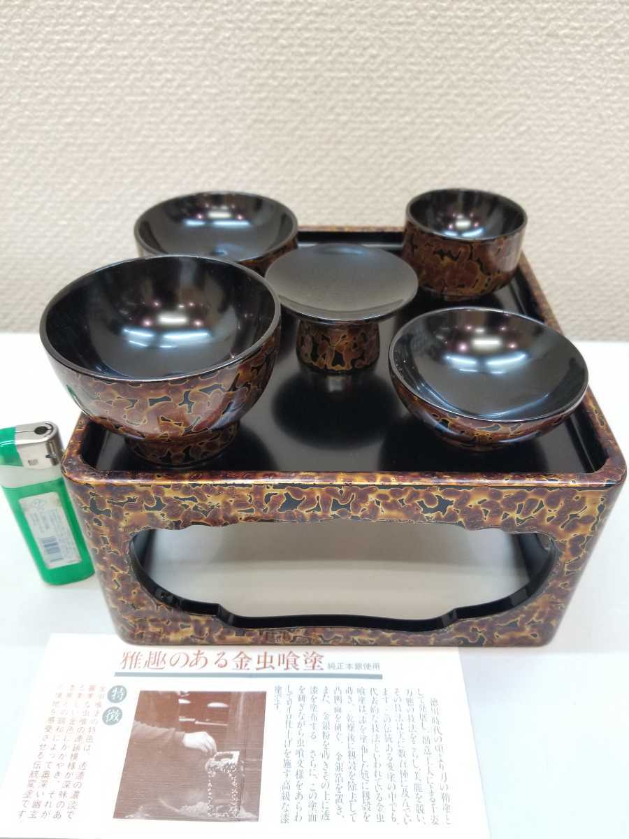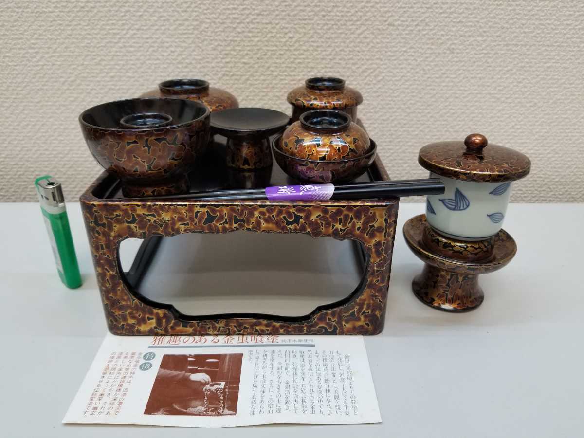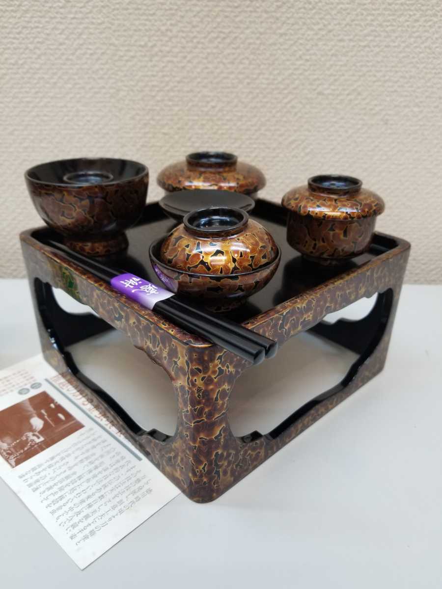 極上仏膳椀セット 木製 会津漆器 金虫喰塗 六寸 18センチ 九重椀箸付 茶湯器オマケ付 在庫整理品 アウトレット お内仏 供養