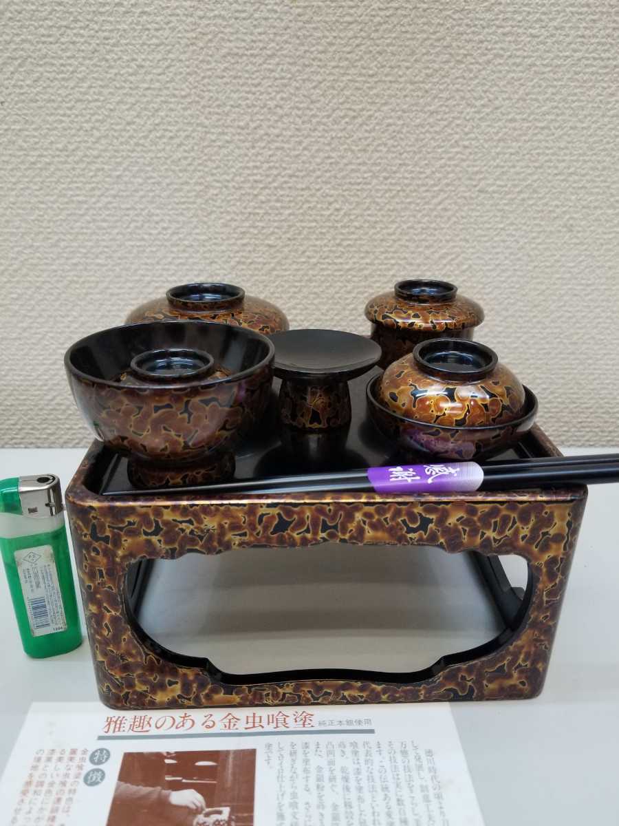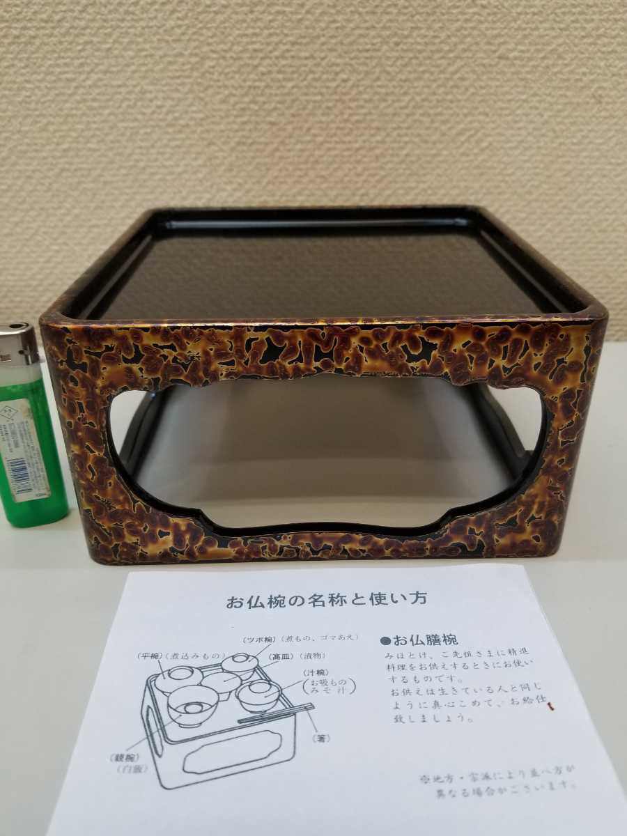木製 会津漆器 豪華 金虫喰い塗 仏膳 九重椀セット付 六寸 一組の出品となります。