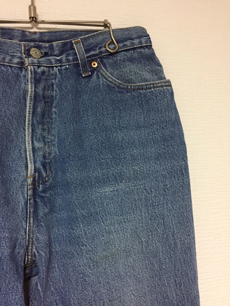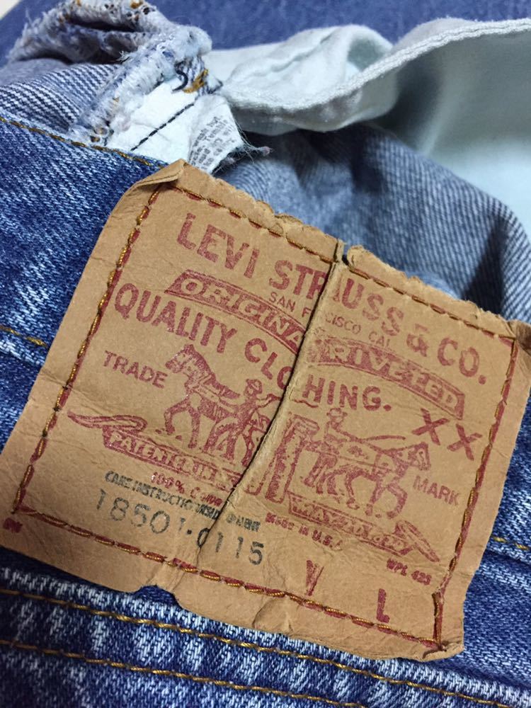 ・80年代頃のUSA製オリジナル ヴィンテージ Levi's(リーバイス)18501 ハイウエストデニムパンツになります。フロントトップボタン裏の刻印はありません。ファスナーは5個のボタンフライ。赤タブスモールe。サイドシーム脇割りになります。色落ちのキレイな珍しいハイウエストデニムです。お探しの方は、この機会をお見逃しなく!