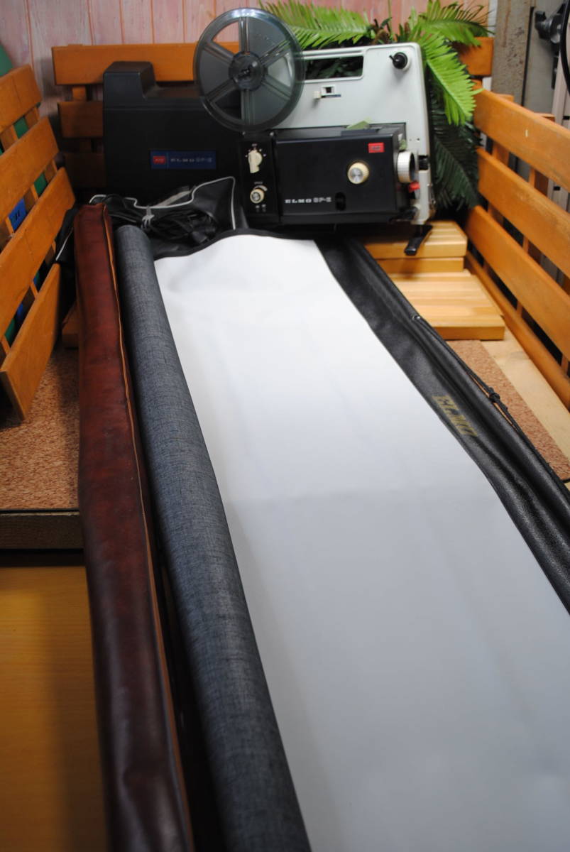 た991.2点セット◇ELMO SP-E/8mmプロジェクター◇スクリーン120×100cm◇エルモ◇コレクション◇器材◇通電OK◇