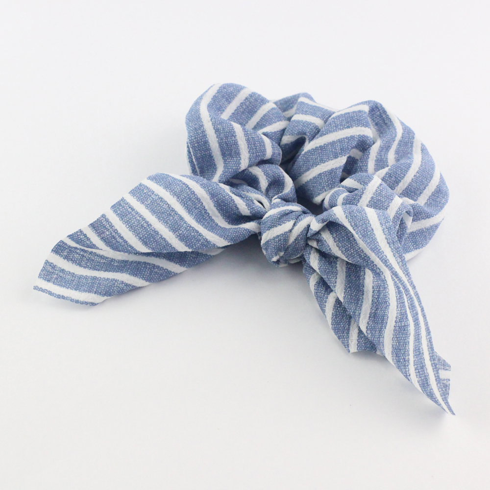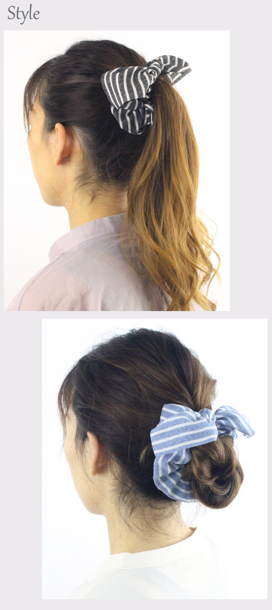 商品説明 | 爽やかなボーダーリボンシュシュ。 ポニーテールやお団子につければ、ポップな印象に! |