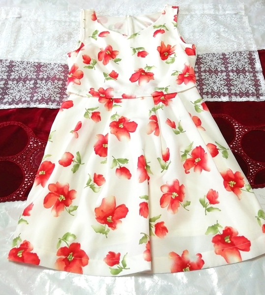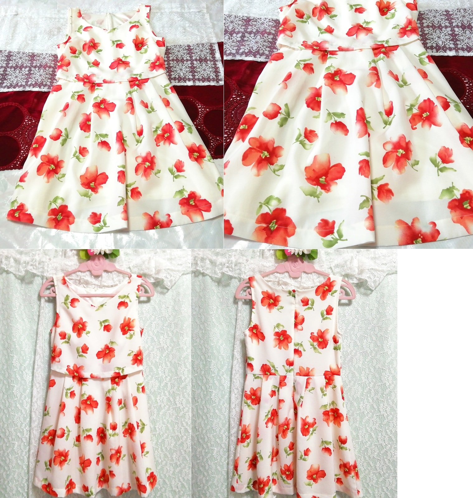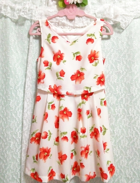 白赤緑花柄シフォンノースリーブ ネグリジェ ナイトウェア ミニワンピース White red green floral chiffon sleeveless negligee dress