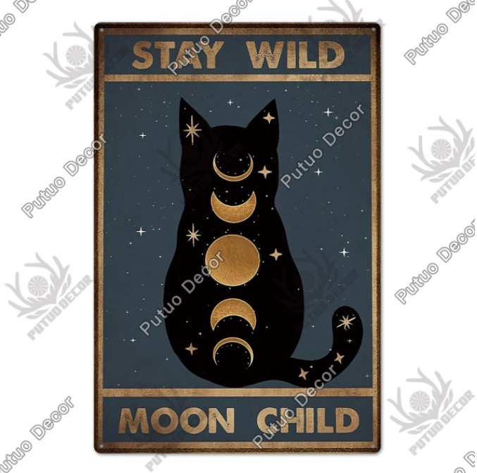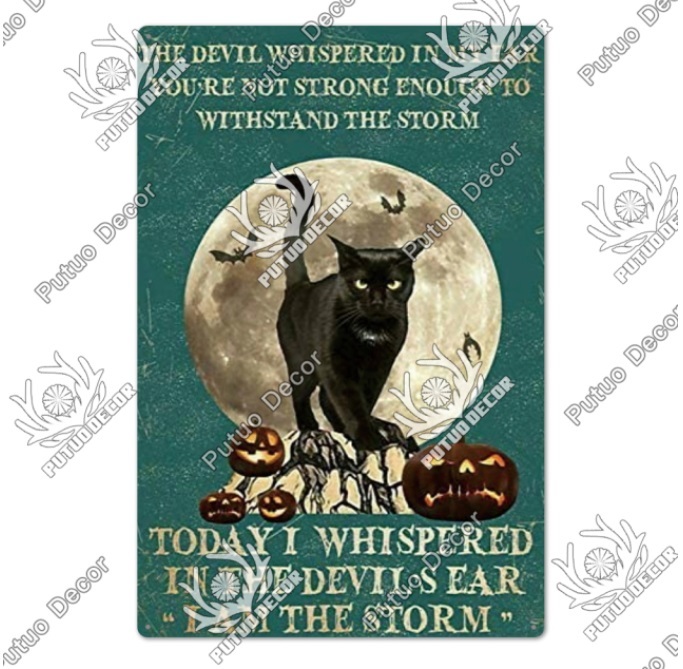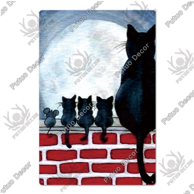 Putuo-装飾的な金属の看板,黒の猫のビンテージタックサイン,壁の装飾,リビングルームのペットショップ【22~24】