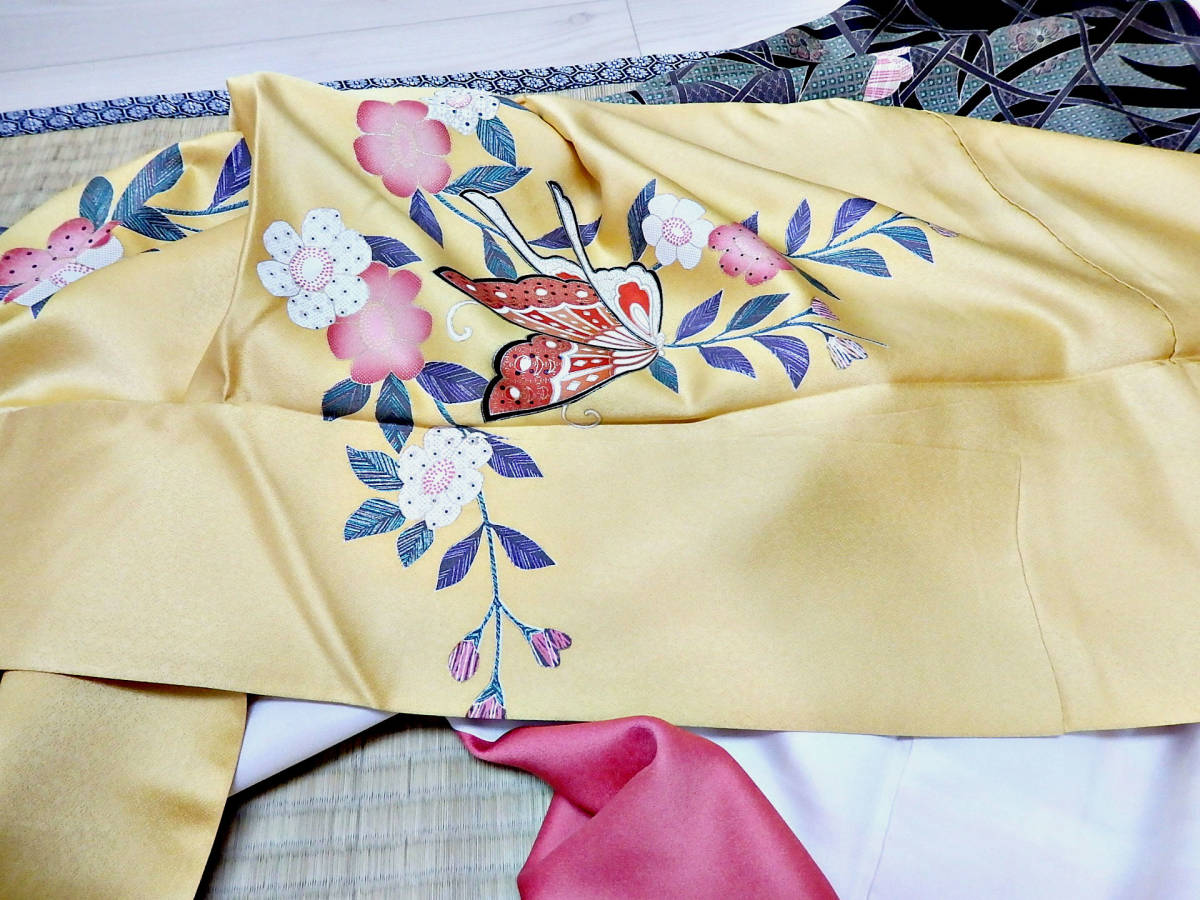 卵色地?枝垂れ桜と蝶の柄の振袖です。