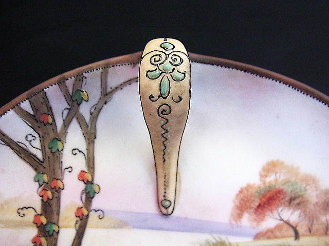ユニークな楕円形に盛上げビーズ細工が施された風景皿です。 落ち着いた風情の艶消しで独特の風景絵が描かれています。 状態はほぼ完全美品です。 大きさは横の長さが17cm、横幅が12cm、ハンドルトップからの高さが4.5cm あります。 年代は明治中期の米国向け作品です。 送料は2700円頂きます。 お支払いはYahoo!かんたん決済、または銀行振込みでお願いします。 日本以外への海外発送も承ります。 ご入金確認後支払2日以内にアメリカより航空便でお送りいたします。 発送後通常4~10日でお届けいたします。 複数品落札の場合は送料をまとめて計算させて頂きますのでお得になります。 私共は経済産業省の定める特定商取引法を順守しております。 当方の所在地住所等は出品者の自己紹介情報欄をご覧ください。 ご質問等ございましたらお気軽にお問い合わせください。   他にもオールドノリタケを中心に沢山出品しておりますのでここをクリックしてご覧ください。