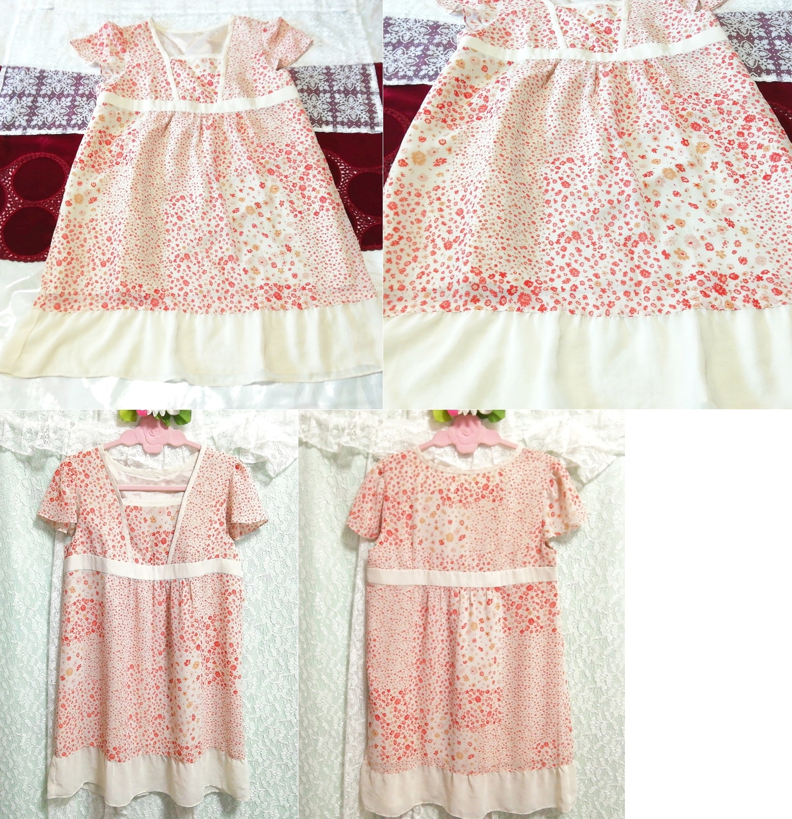 赤花柄シフォン半袖チュニック ネグリジェ ナイトウェア ワンピース Red floral chiffon short sleeve tunic negligee nightwear dress