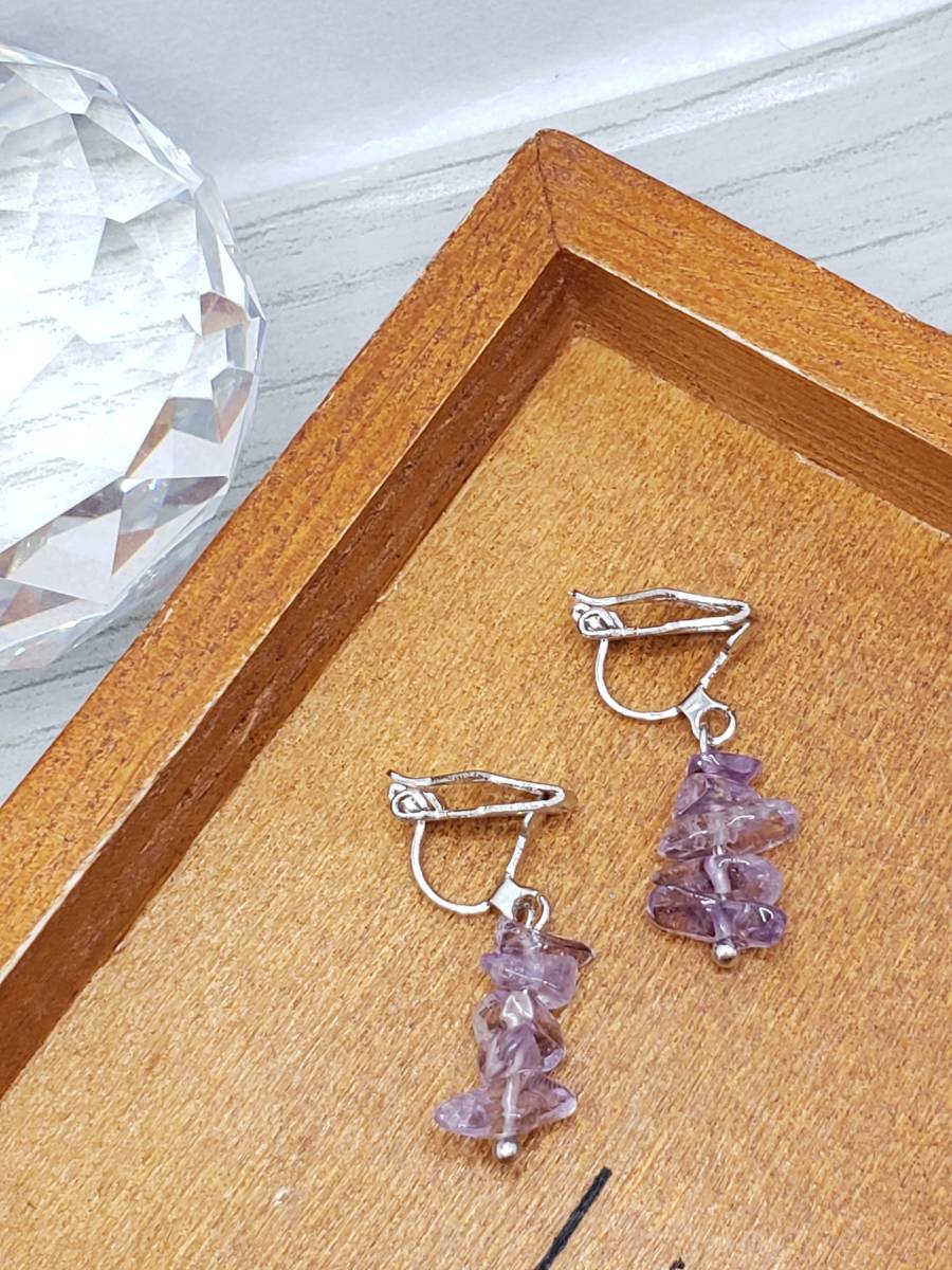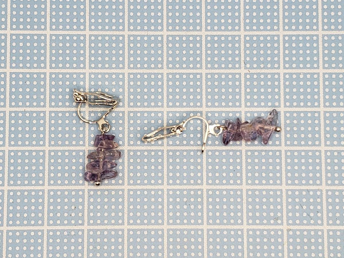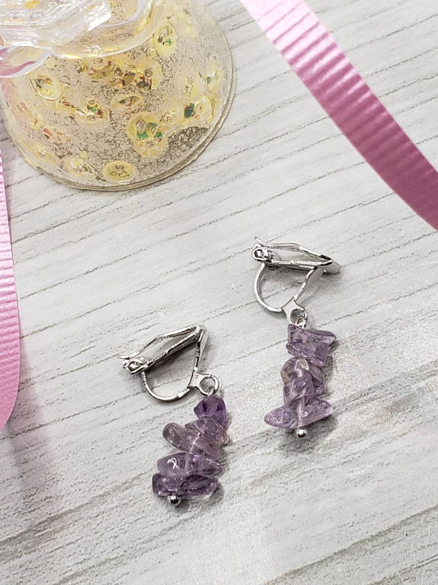 ★ハンドメイド イヤリングorピアス A578 樹脂フック・バネ(クリップ)式イヤリング金具など変更無料 ラベンダーアメジスト さざれ★