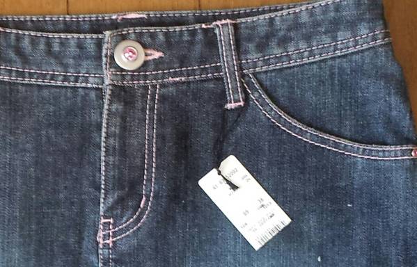 前ボタンと後ろポケットのところにピンクのキラキラついてます。