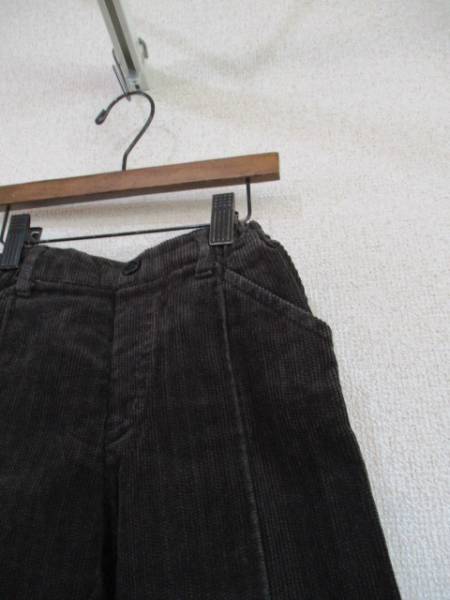 商品紹介 | こげ茶色のコーデュロイパンツです。 センターにラインが入っていて、裾は1度折り返したデザインで外側にボタンが付いています。 丈は身長や脚の長さにもよりますが、ハンパ丈になっています。 ウエストのボタンと股のステッチは飾りでファスナー等は付いていません。 《素材》 綿100% |