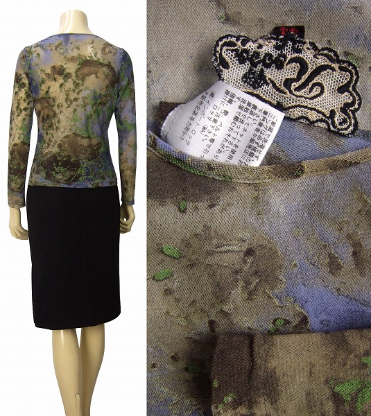 H 新品同様★Rossa ロッサ*インポートロッサ★綺麗チュールネット生地*高級カットソー*44表記★40*L*11号相当