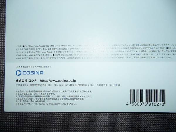 ▲【カタログのみ】カタログ フォクトレンダー  2016.7 カメラ本体ではありません。