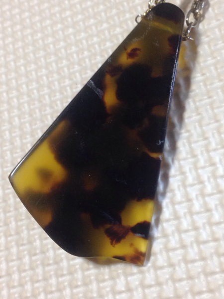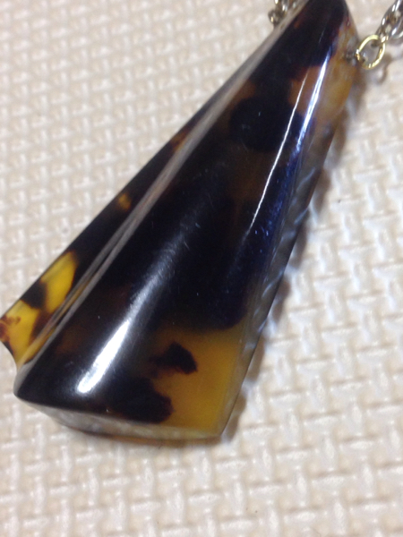 大きな鼈甲風のペンダントネックレスです、鼈甲風のサイズは66×36×11ミリです、重さは20グラムあります、 後ろには少々擦り傷はありますが気にはならない程度と思います