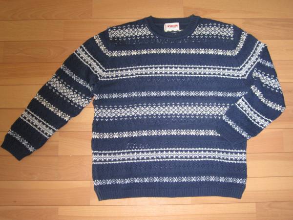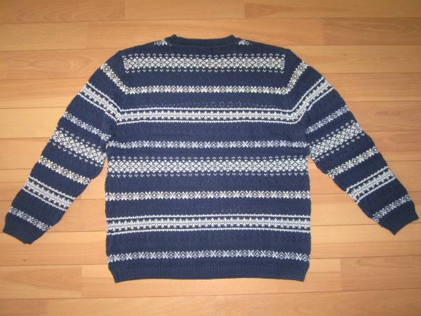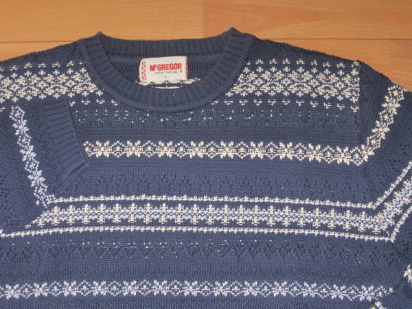 ★Mc GREGOR フェアアイル&透かし編み 綿クルーネックセーター ★青★