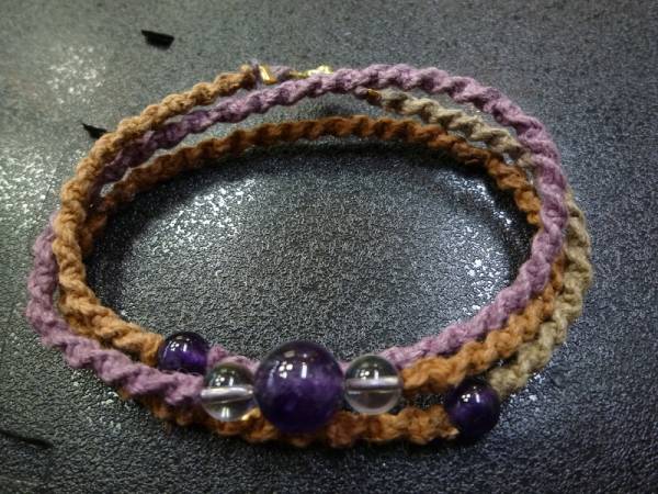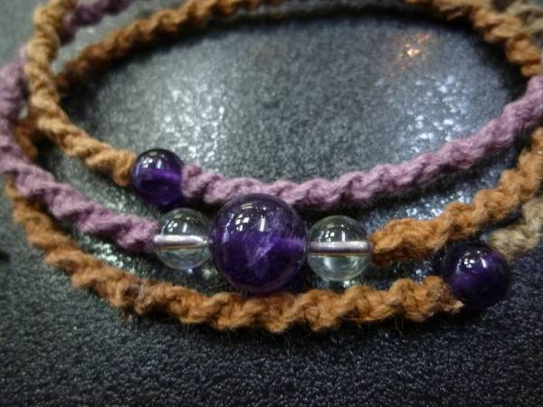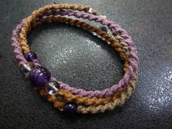 アメジスト 水晶 手編み3連ブレスレット