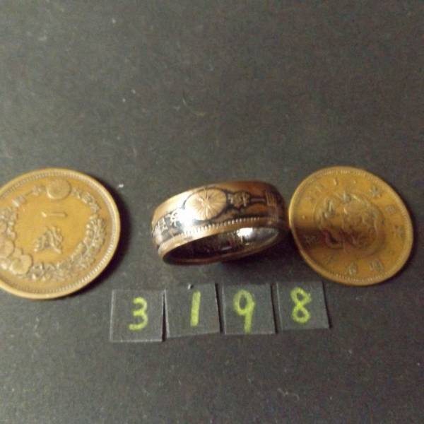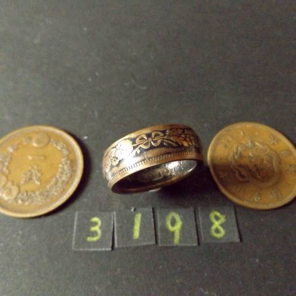 19号  コインリング  竜1銭銅貨  ハンドメイド 指輪 送料無料 (3198)