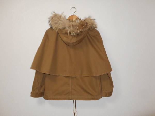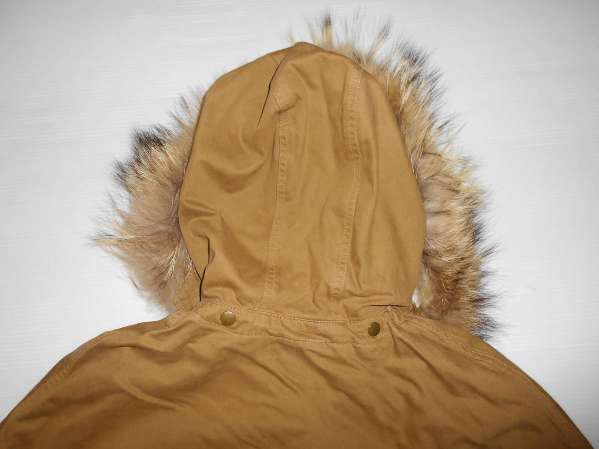 ジャーナルスタンダード ラクーンファー毛皮付きコットンブルゾンです。正規品です。 素材はコットン100、ファー毛皮チャイニーズラクーンです。色はキャメルです。フロントはボタン留めです。毛皮部分は取り外し可能です。(3枚目の画像)