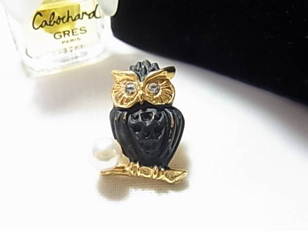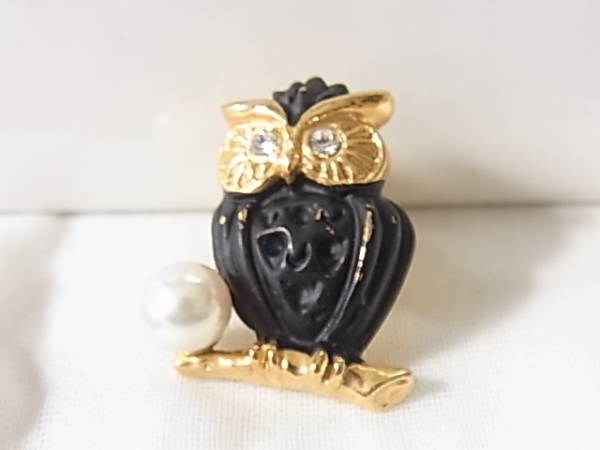 貝パール付☆縁起良ふくろう♪フクロウ梟 タックピンブローチ△++