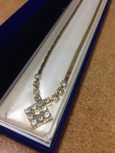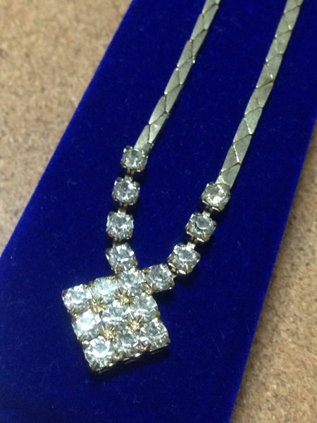 スネークチェーンのジルコニアが光る、シンデレラペンダントネックレスです、長さは42センチ、トップは20×15ミリ、美品です★ 送料は120です