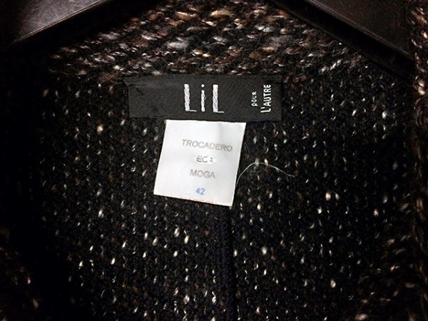 LiL ウールニットロングコートです。MADE IN FRANCE◆色はブラウン・ホワイト・ブラックのミックスで落ち着いた色味のニットロングコートになります。◆70% wool 27% acrilic 3% nylon◆サイズは42で着丈約110.5cm・肩幅約38cm・袖丈約62.5cm・身幅約45cmです。◆USEDですが状態は良好です。