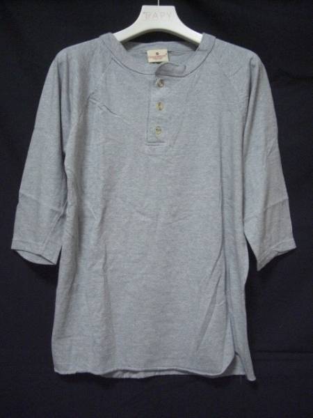 | *細身のシルエットでやや丈が短く作り上げたこのBASEBALL ヘンリーTEEはシャツの中に着ても、一枚できても大活躍!、肩の縫い合わせが襟元から脇下に向かう「ラグランスリーブ」+「ハーフスリープ」スタイルで普通のTシャツよりもアメカジテイストが強くすっきりとしたシルエットです。 | ||