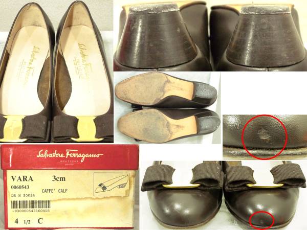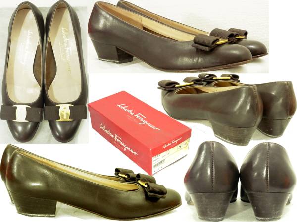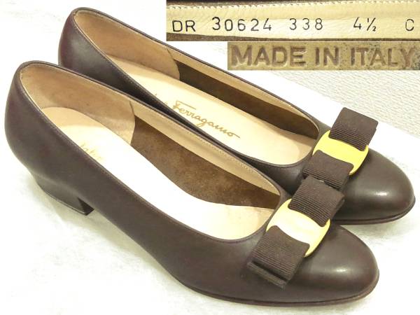 ★★★★即決価格でご落札は送料無料★★★★ フェラガモ ヴァラパンプス 4.5 C ダークブラウン×ゴールド金具 約22.0cm Salvatore Ferragamo ローヒール 4 1/2 C Made In ITALY イタリア製 | ||||||||||||||||||||||||||||||