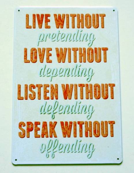 【ブリキ看板】Live without pretending love without depending listen without defending speak without offending/GT-1696