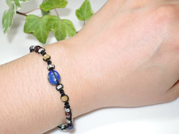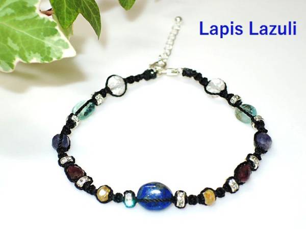 ★ラピスラズリと輝く宝石達★天然石手編みブレスレットkamesan